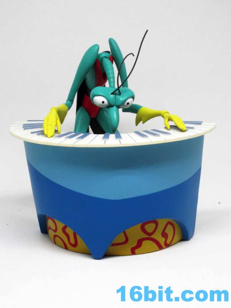The roughly 6 1/2-inch action figure comes with some strange articulation, even by its day's standards. Shoulders, neck, skull, swivel elbows, swivel knees, hips, and waist - make it posable but not particularly sturdy. Getting him to balance is tricky, but thanks to the piano you may never need to worry about this. You can just prop him up, and the problem is solved. I got him standing but it didn't last particularly long.