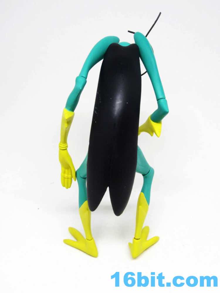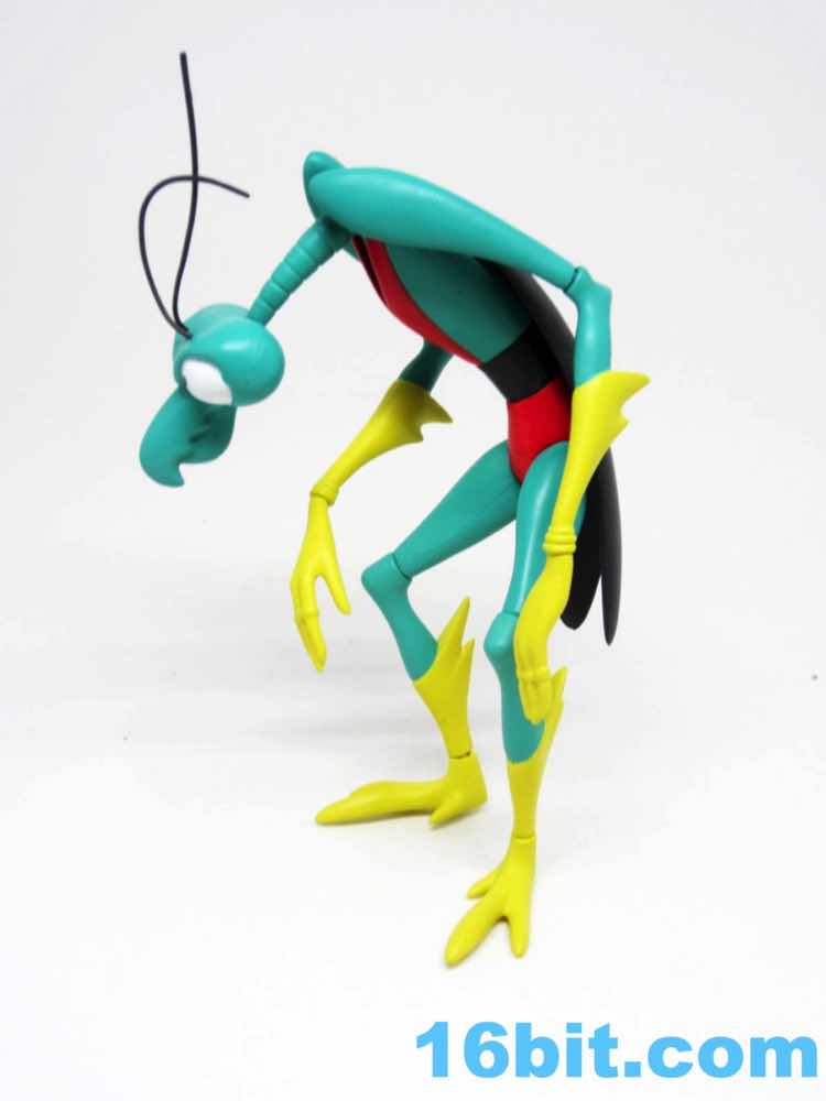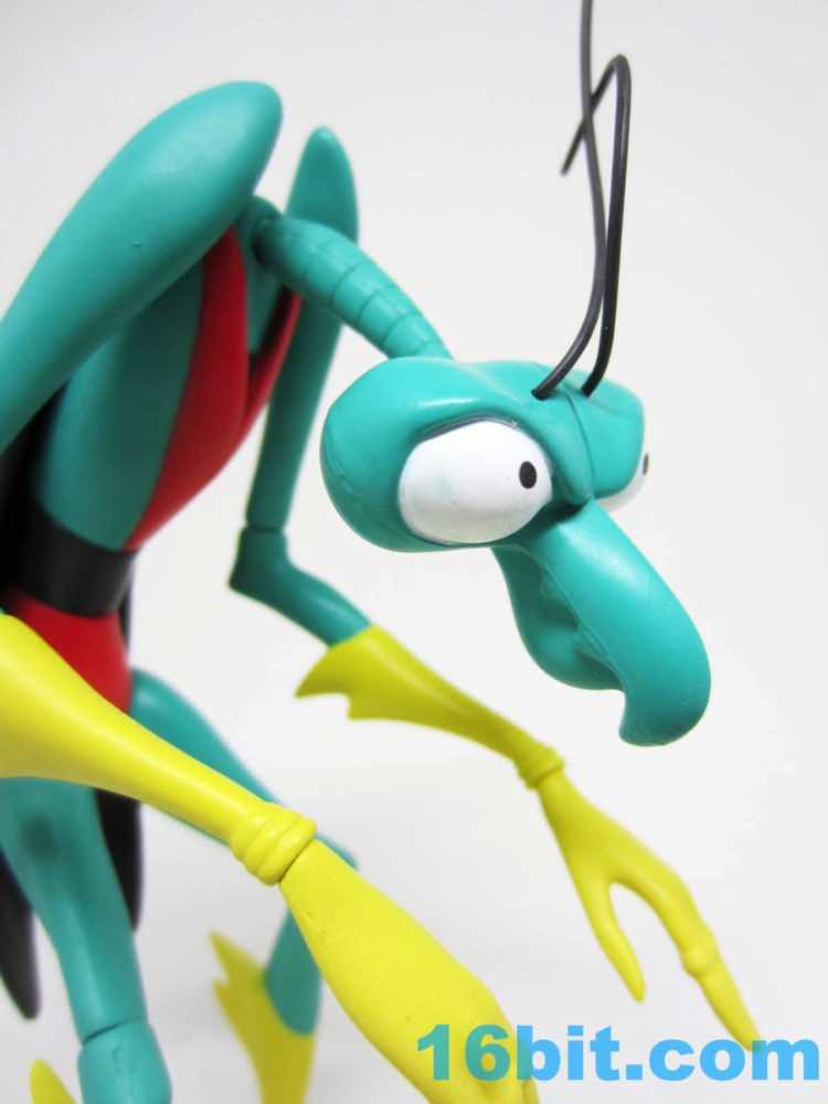 The sculpting is unmistakably Zorak, but the challenge of adapting 2-D art to a 3-D figure is no small one - particularly when you're dealing with limited animation. We all have a very good idea what Zorak looks like, and the outfit color switched between blue (which was more common on the show) and red (which is what the figure went with). Can't win 'em all. The head has the eyes looking up a bit, but the dot size isn't quite right and the mouth/beak is close, but not perfect. Without the lines of the art, it looks a little off. Slightly bigger eye dots and maybe some black lines around the mouth could have done wonders, but seeing this figure created at all, for any reason, is something of a miracle. Getting it right? Well, that didn't happen a bunch in the 1990s. Or 2000s. The unique cut of the gloves, the accordion ribbing of the wrists, even the black mantis wings are all created here in a fashion that's fairly close to the outfit. The tunic on the figure looks more like a vest on the show, complete with a very clear cut in the fabric down the middle of the chest.