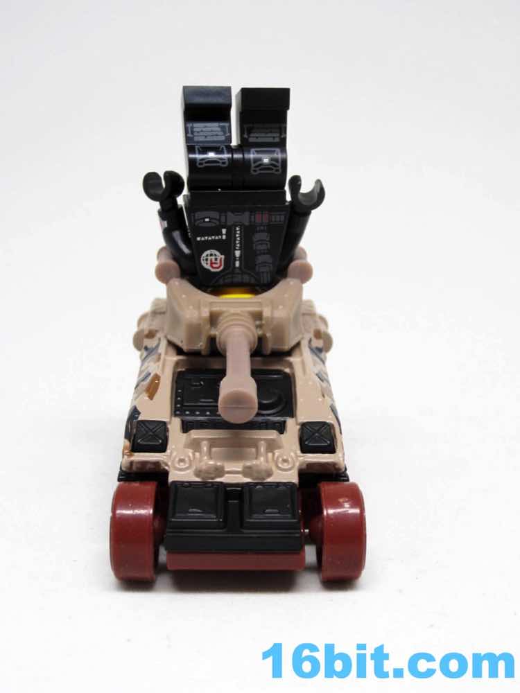 Designed - I think - for Mega Bloks figures, the Tankinator is a pretty awesome toy. It has rolling wheels like any car from Hot Wheels, but adds a jointed turret with 3mm rails for figures to grab and an opening to fit other figures inside. It's too narrow for LEGO men, but you can fit in Bit Figs or small, skinny toys without much of a hassle.