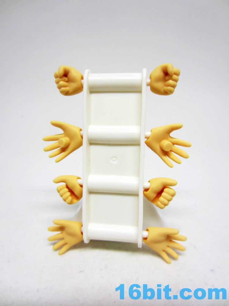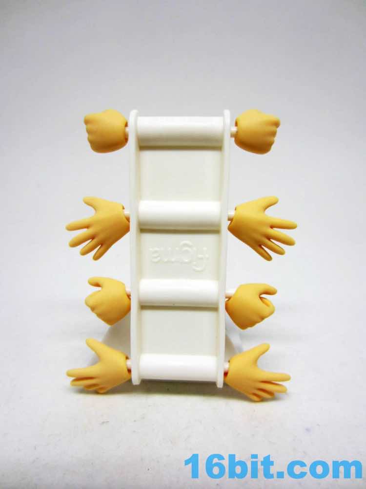 Standing about 4 1/2-inches tall, Link is not what you would call particularly tall. Sure, he's bigger than other American figures but it's not like he's necessarily scaled to too many other recent American Nintendo toys, although I assume he's in scale with the other Figmas you now regret not buying. You know the one. Link has two facial expressions - pop off the hair to change them - and four sets of hands. Four! Fists, open hands, open hands with pegs, and normal gripping hands are here for you. It's worth noting the Hookshot, shield, sword, and Tornado Rod require disassembly to fit in the tight hands - each one pops apart around the grip for this purpose. The Tornado Rod's top also pops off to add the tornado effect if you're so inclined. What's more, I should note the "peg hands" are designed with a peg to help Link hold a bomb or a Rupee. The hands were not designed for pot-throwing in mind, but it does make for a nice little accessory.