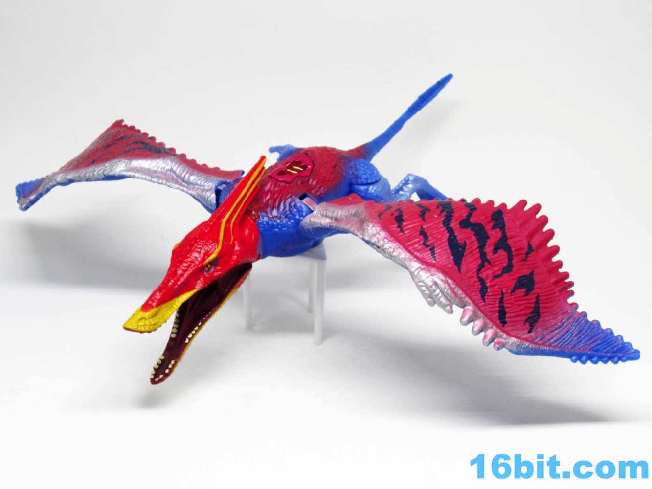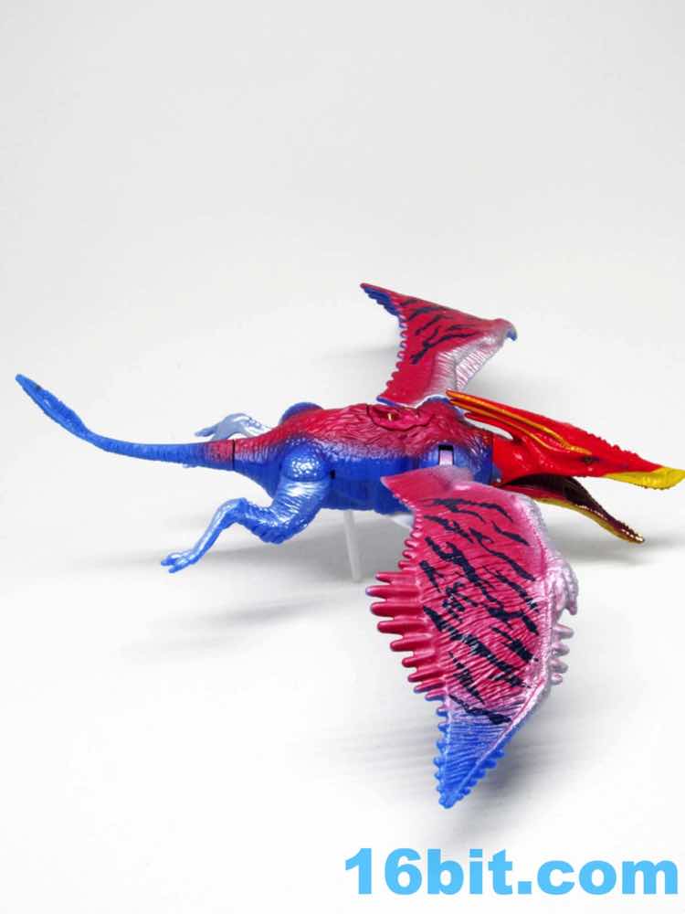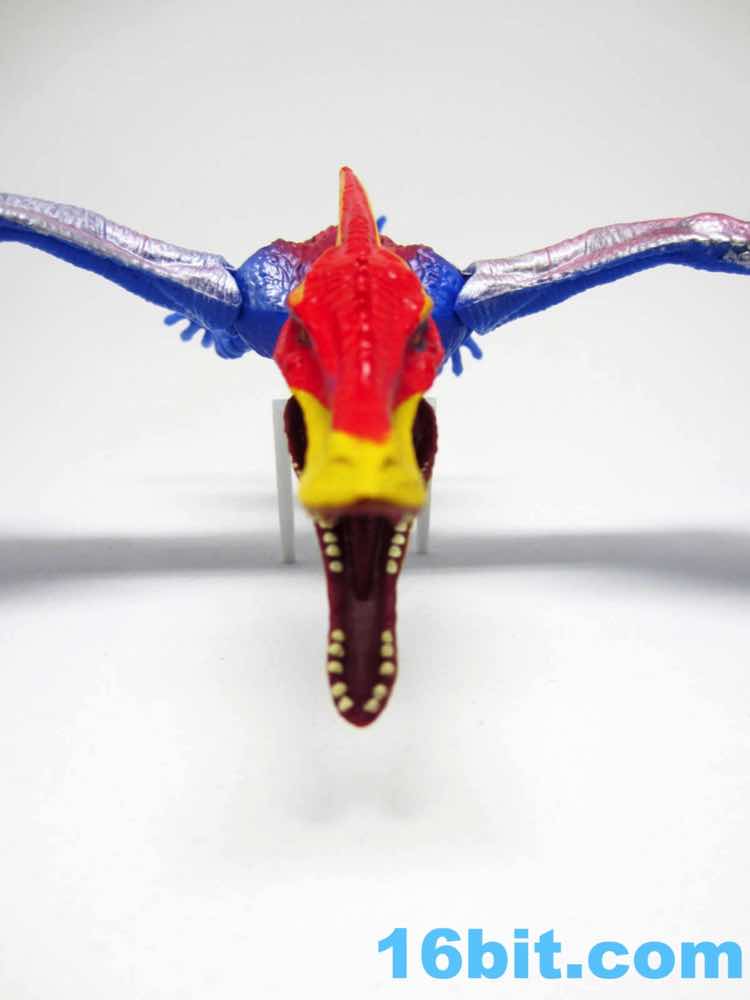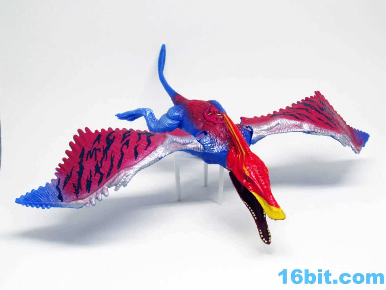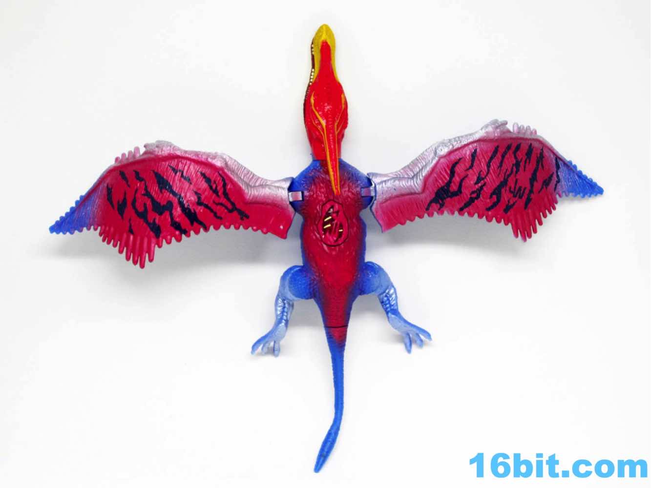 I love the all-too-brief revival of The Lost World: Jurassic Park: Chaos Effect dinosaurs that is "Dino Hybrid." The Hybrid Pteramimus is a Dimorphodon with a new head, new wings, and new deco - and it doesn't quite match the one from Hasbro's packaged sample photos. The final toy is very red with some blue and yellow. The photos are largely purple. If you see one that's more purple for sale, let me know - I'd like to know if there's a legit variant out there. I should also note that with this (and other) toys on Amazon, the name is incorrect - and other sellers have it wrong, too. It's "Pteramimus" on the box. Two "m"s.