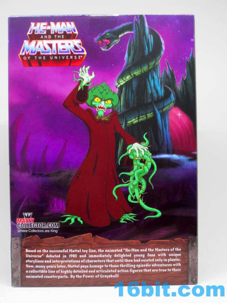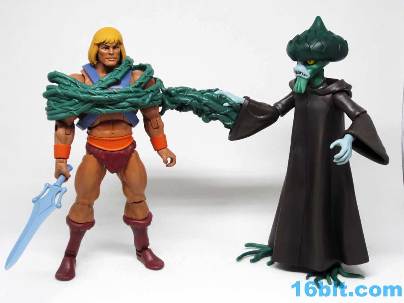 The Four Horsemen did a spectacular job of recreating the character - a mass of plants in a robe - as an adult collectible action figure. His robes limit his leg articulation, but you can move around two masses of tendrils to ensure he remains upright on your desk to menace He-Man. The alternative foot and leg design is nothing to sneeze at, as I rarely see anyone trying anything like it. The robes block the view, but if you look up his garment you can see how they put him together. The vines worked nicely. Oddly his hands are hands, but that's consistent with the design on the show.