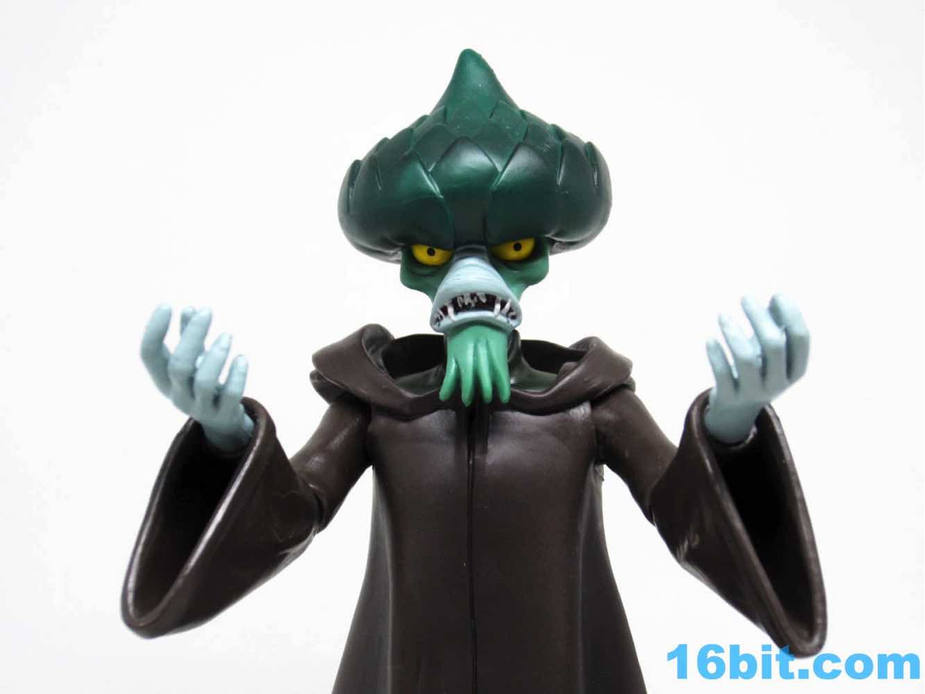 Onion head here has 13 points of articulation, most of which are in the arms. Everything bends and swivels save for the wrists, which merely swivel. His creepy head looks just like the cartoon with sharp teeth and a snout that's not quite a nose, all under a "hat" of plant material covering his yellow eyes. His menacing scowl looks just like I remembered it being on the cartoon, and I checked the animation to compare. The Four Horsemen nailed it, and the robes seem very, very close - they look a little pointier on the cartoon but I'm just picking nits here. This is Evil Seed, pure and simple, and the fact that he exists is amazing. That he's colored right and looks like the cartoon version of old is nothing short of a miracle.