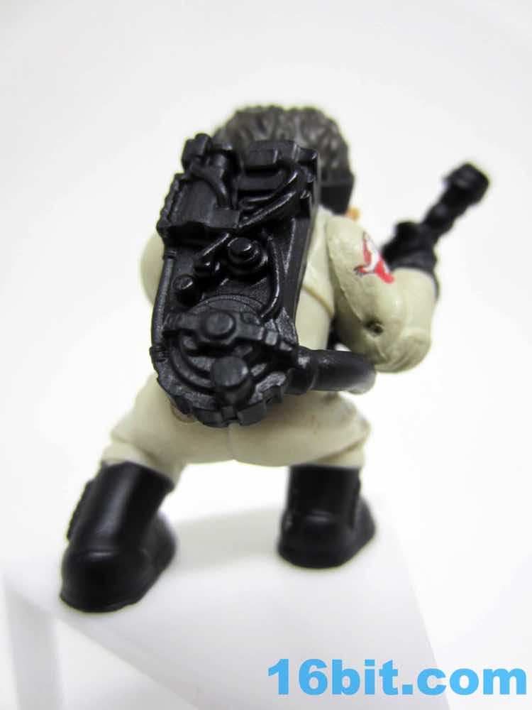 Able to stand easily, Ray has foot peg holes and probably won't ever actually make use of them. His proton pack is stuck to the back, complete with wand pointing skyward. The sculpt is decent, but the paint is a little packing - the body is mostly unpainted save for gloves and boots, meaning the belts and elbow pads are undecorated. You probably won't notice. The eyes are looking off to the side, and apparently it varies by figure. A quick Google search showed Rays looking to the left, lazy eyed, or looking straight ahead. As such, it's sloppy. The Ecto gear is all black, so the various bright lights and cables are left completely undecorated. I assume at this size, you won't miss it either.