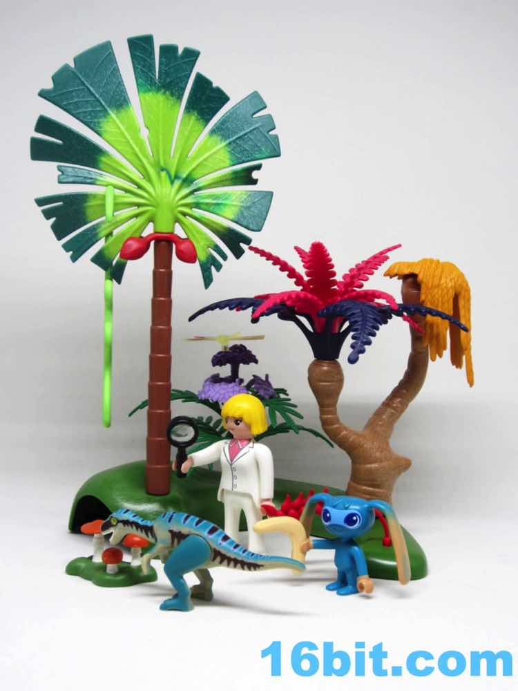 All of the toys are constructed nicely out of sturdy plastic and came through with almost completely perfect paint jobs. (Plus or minus those raptor eyes, at least.) If you bought the figure for $2, you'd dig it. The island scenario just raises questions of the narrative, something Playmobil had rarely inserted in its product line beyond "this is a bar with drinks in it" and "here is a homeless man who has been drinking, and the cop will soon throw him off the bench." Maybe the researcher is looking at bugs with her alien friend and the raptor invites them all for drinks? Collectors will enjoy the new flavor of dinosaur and perhaps the unique trees, plants, and accessories. Fans of the show may understand what is happening here. I'll just hold off for something else, I think, when it comes to my next blue box purchase.