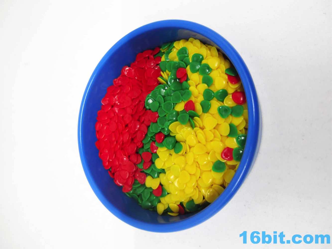The pit itself - a small pool - could be a problem. Sure, it's an undecorated blue dish - but those 3 sacks of hundreds of green, yellow, and red balls could be a real disaster if someone sneezes or tips it over. I can see these getting lost or sucked up in a vacuum cleaner, because once you drop these things in the carpet you'll never see them again. It's a blood sacrifice to the Gods of Housekeeping. It's a clever idea, as the "flakes" won't roll everywhere once scattered - but it's still a mess.