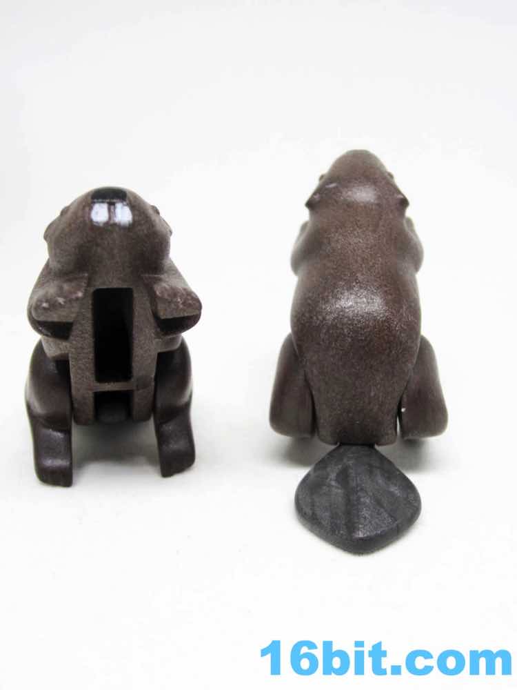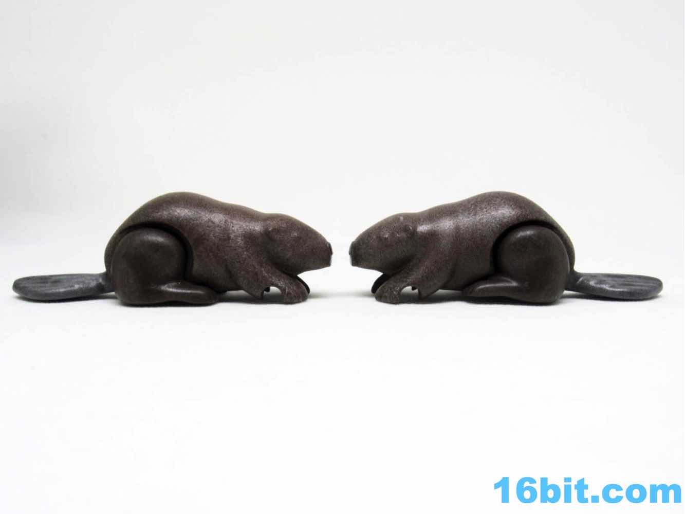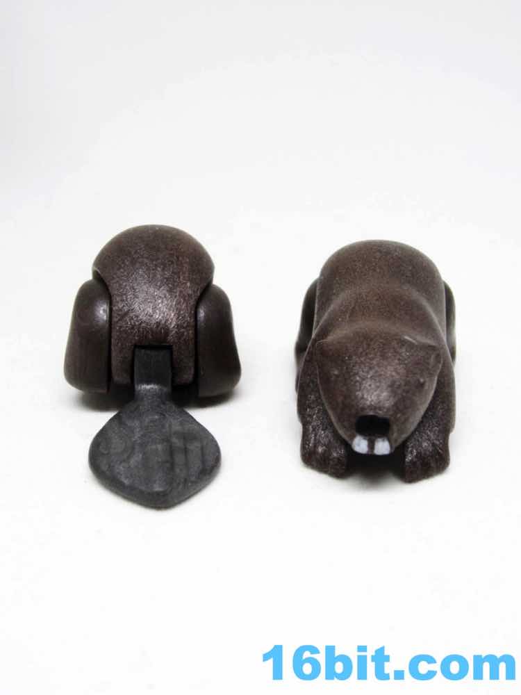 If you like big brown beavers and you wish you had a pair, today's your lucky day. These ones have darker fur and have jointed hind legs and a posable tail! Some critters lack the moving parts we crave, and the sculpting is classic. To put it mildly. Playmobil's ethos on animals have changed a bit over the years, with older toys hewing to the original concept for the line - these ar basically children's drawings. Kids will emphasize certain features (eyes, mouths) and eschew others (noses, ears) so most creatures were designed similarly. Horses were initially very simple, and other creatures were generally more simple shapes. If you compare the beavers (a design from 2003) with the recent river otters (2016), you'll see a much greater emphasis on realism in scale and proportions with improved deco and less articulation. The beavers have little hands to hold on to twigs and legs to pose them to look like they're nibbling on a tree - plus the jointed tail to slap down building materials. Their painted white buck teeth are a little sloppy, and their eyes remain undecorated. Despite being somewhat recent, they certainly look like much older designs.