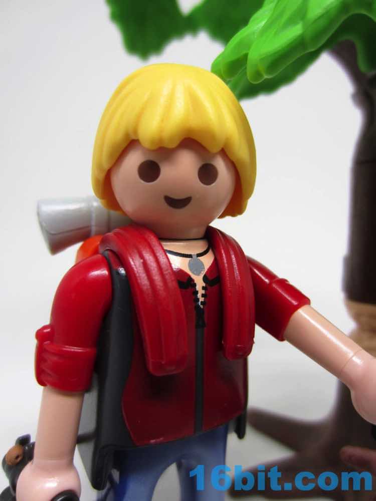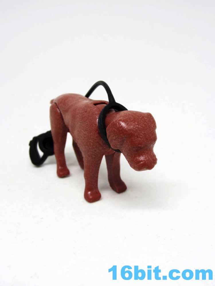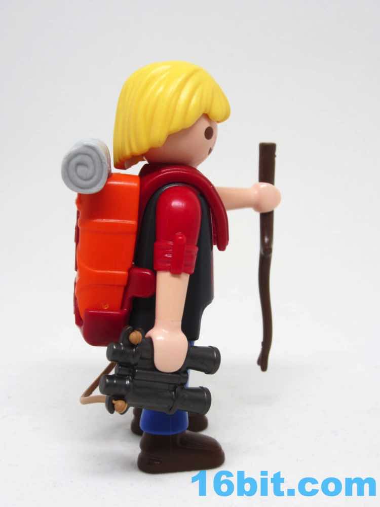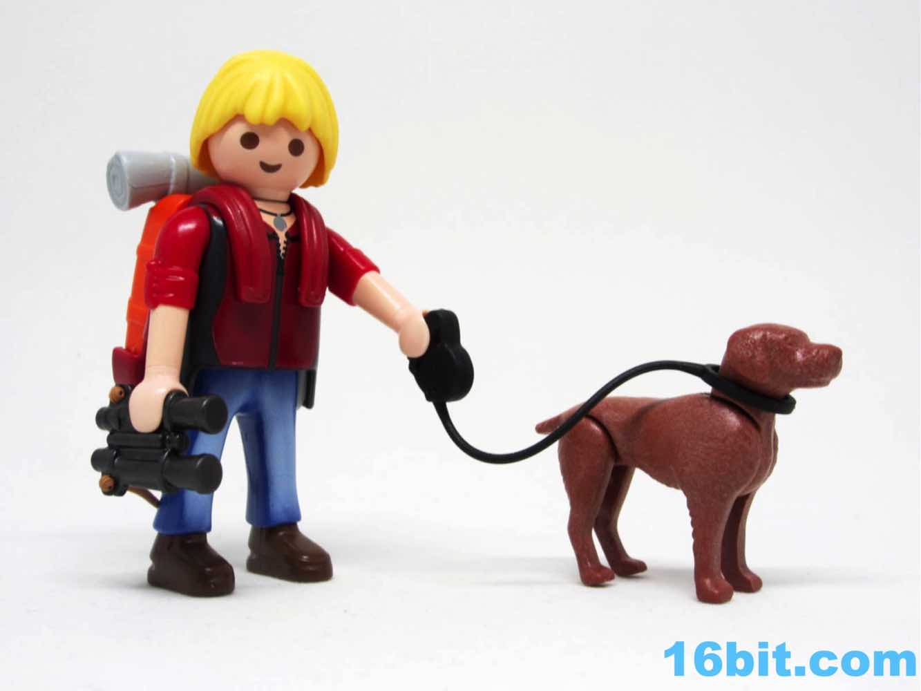 The hiker is your typical 3-inch male figure - by now, you know the drill. He has a unileg, jointed wrists, jointed shoulders, and a neck which actually limits the range of movement to that of a normal human. The messy blonde hair and shirt look like typical hiker fare, and he has a clip-on backpack that's a little tough to make fit without a little force. He can hold his accessories quite well - a set of binoculars and a dog's leash function nicely.