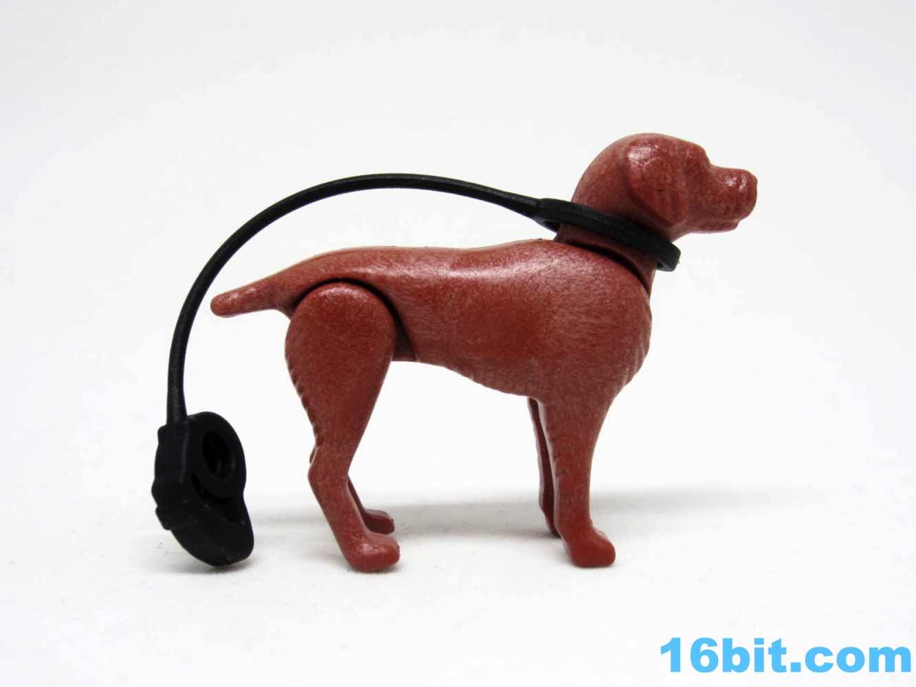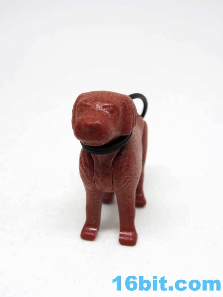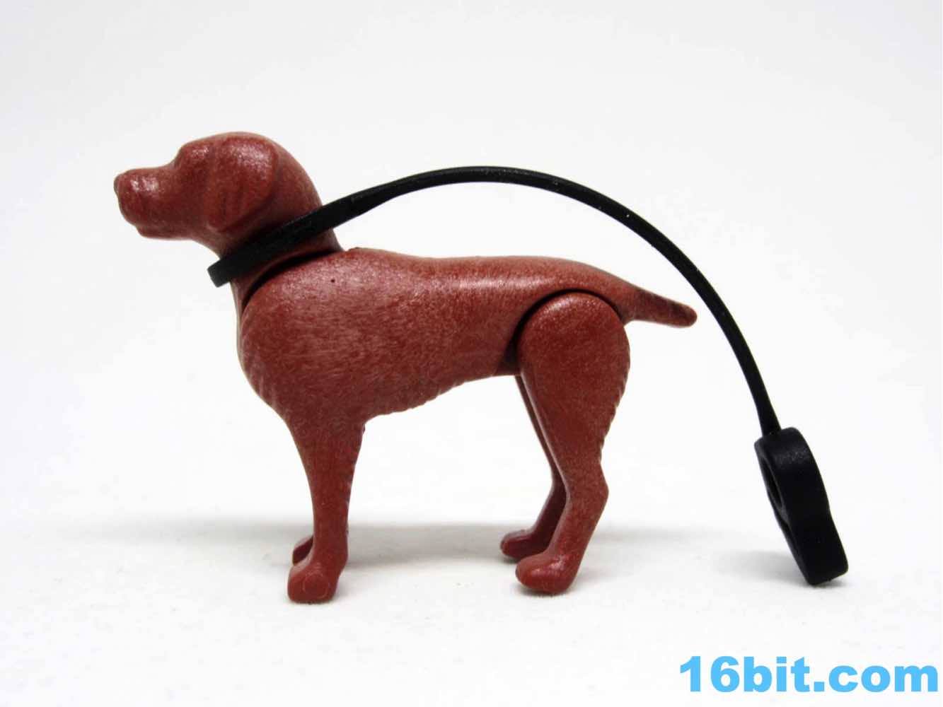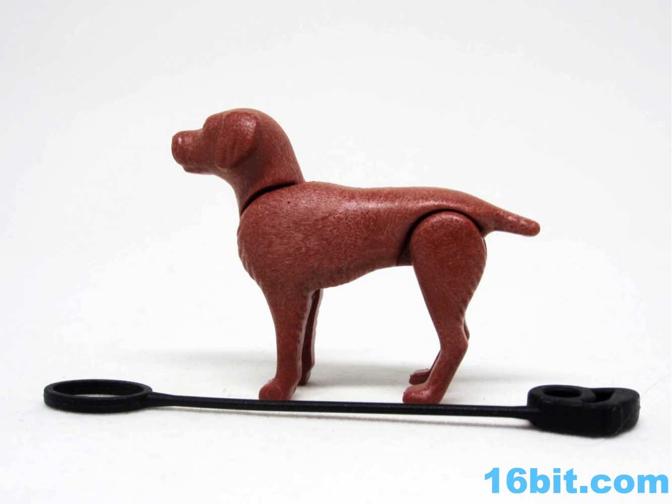 The dog has longer ears and is unpainted, with a fuzzy little face and no painted eyes. At this point I'm not sure when Playmobil decides to do eye deco or not, but we did get jointed hind legs and a jointed neck - which a lot of the older pooches lacked. He's a cute little guy, and the rubbery leash fits perfectly over his neck. I hope the stretchy plastic survives play and time, as reins and leashes in other toy lines don't always survive the long haul. It's still a nice accessory, and its grip has that retractable handle that all the cool dog owners have these days.