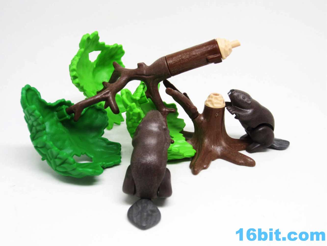 There's enough new in here for a collector to say "hey, I need that." If you collect animals or share a fondness for beavers, surely you'll find something you like here. A big selling point for me was the tree, which doesn't so much have a mechanism for its collapse. There's a peg and a hole - so you pop it apart with your hands and drop the felled lumber nearby. It would've been a great place to put in a new mechanism, but unless there's a lumberjack attack action coming down the road it wouldn't get much reuse. Playmobil's very fond of recycling parts and pieces, although not as much as LEGO. It's a neat tree - somewhat short, but it'll look nice near your other trees. It stands freely without a piece of ground for stability.