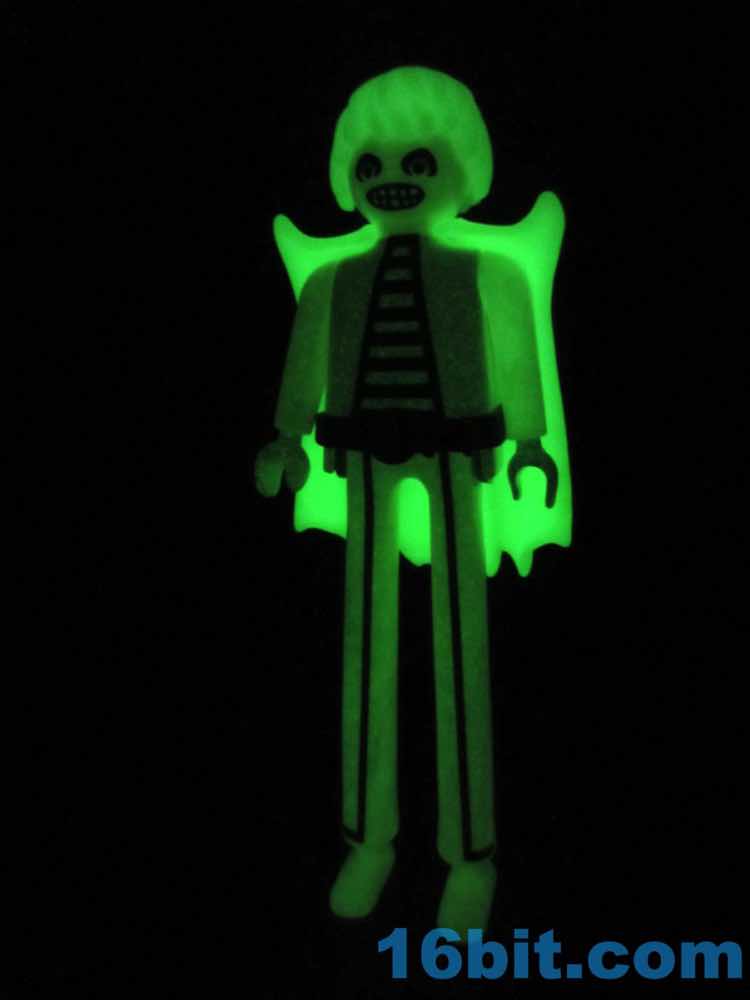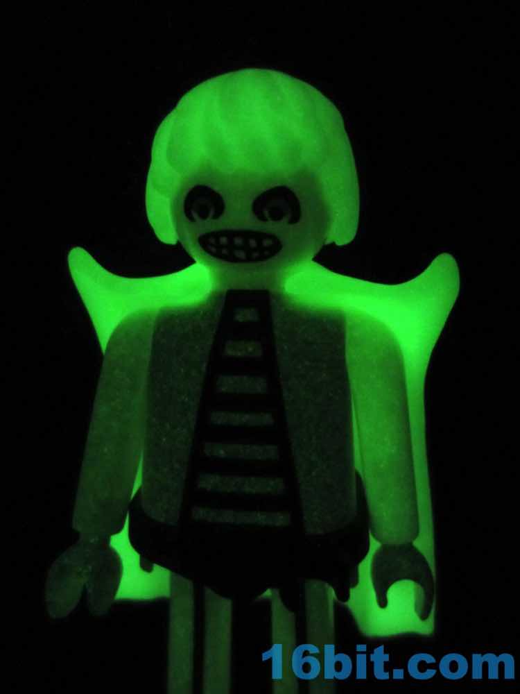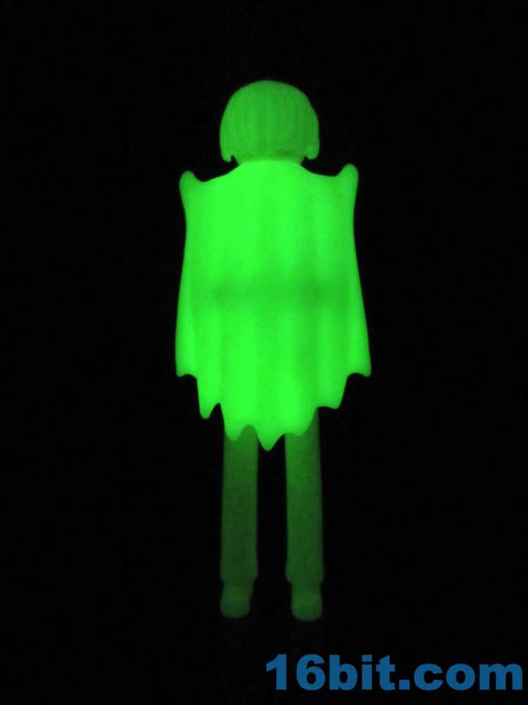 Assembling the figure is a bit of a trick, getting everything to align and snap in place is a satisfying ordeal. You can pop together everything fairly easily, with a nice glowing wig. Each kind of plastic glows a little bit differently, so expect a two-tone glowing experience in a dark room.
