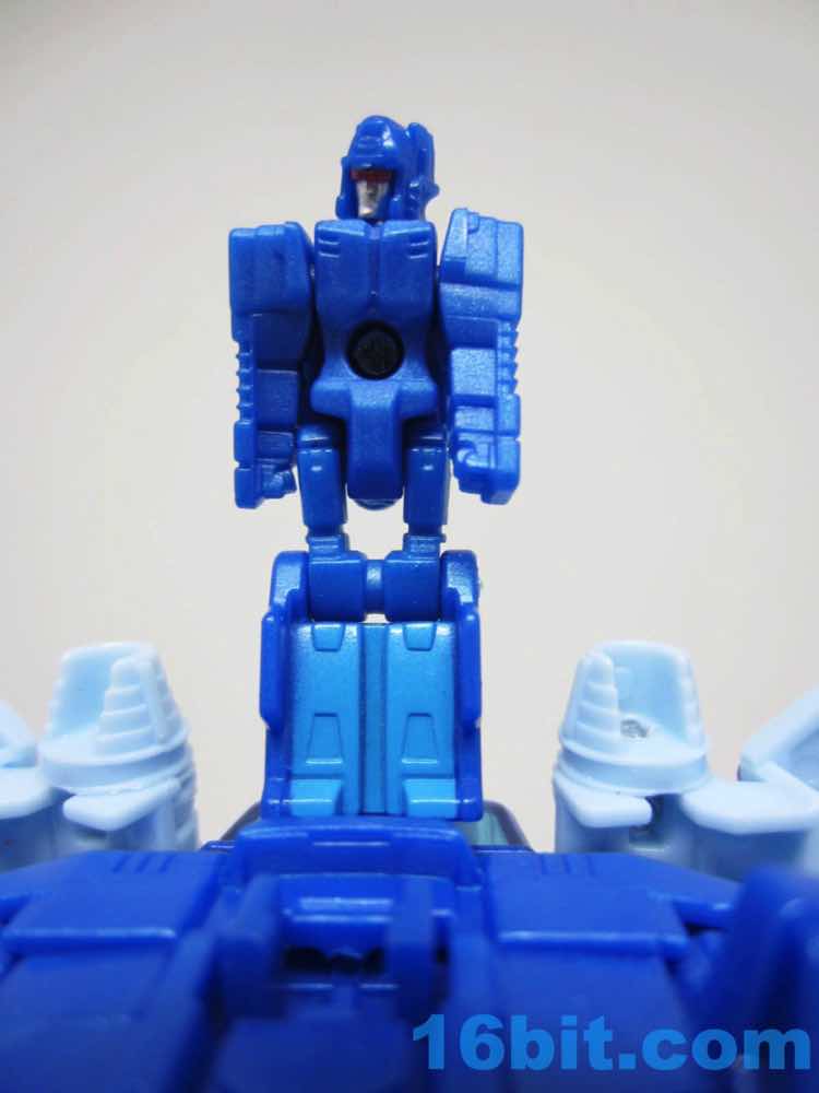 This 1.5-inch head robot is certainly decent, and shares construction (but not the face plate) with Highbrow's partner Xort [FOTD #1,542]. Scourge also shares parts with Highbrow - Hasbro has really become some sort of crazy engineering geniuses, hiding internal parts from us and using them across multiple figures to save money. Most of us won't squint so closely that we'd recognize the tiny Titan Master figures as being the same on a couple of figures - especially when you include new colors and a new face plate backpack. The figure has the same articulation as his siblings, with a grand total of 5 joints to manipulate. The little robot can sit in the gun chair, in the vehicle's cockpit, or if you like he can stand on a peg on the exterior of the vehicle.