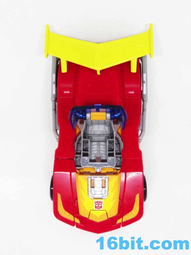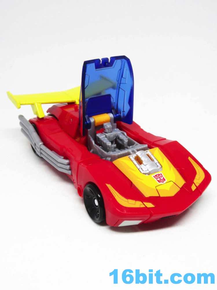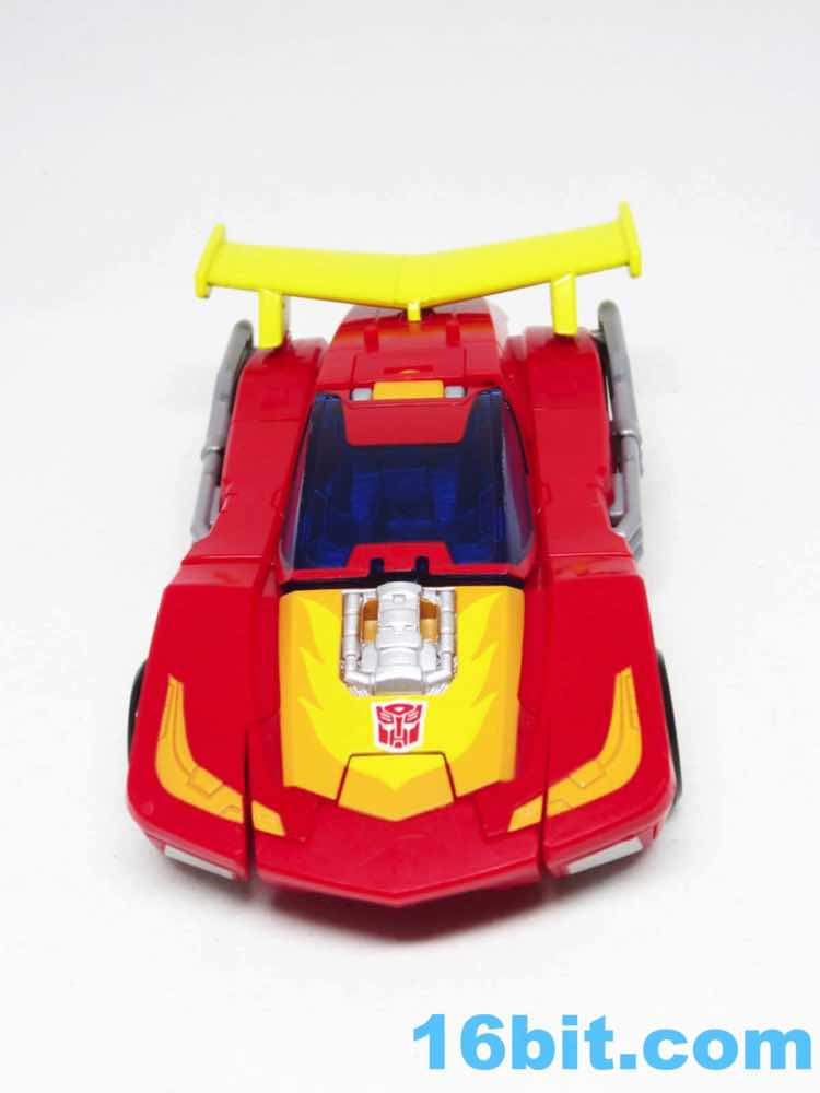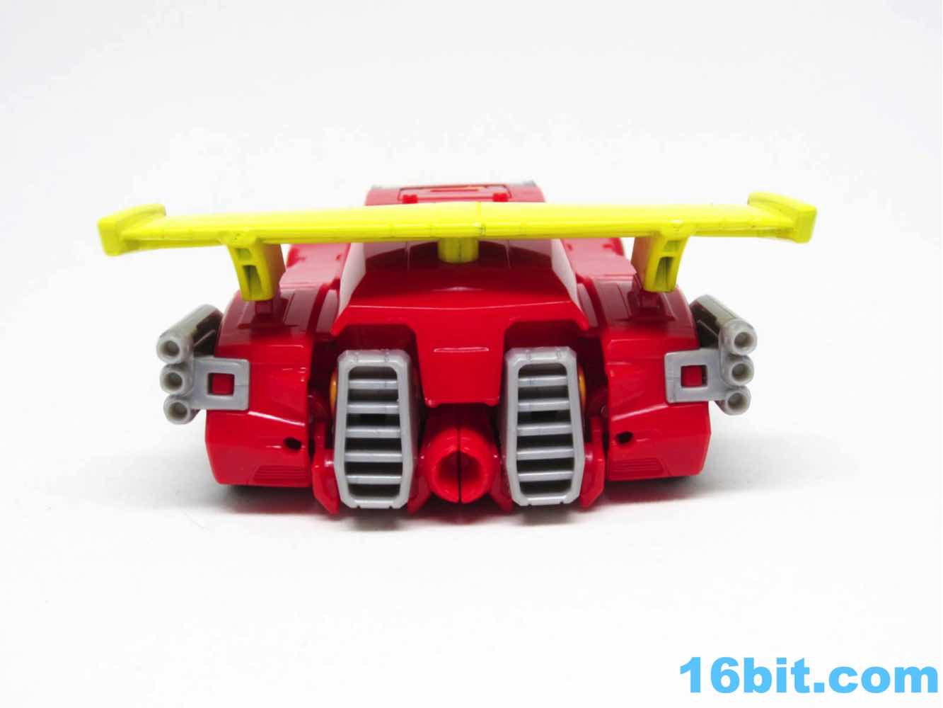 As a kid, I went after Hot Rod over Rodimus Prime because I loved the car mode so much - and the new one is cool too! Maybe not as cool, but it's pretty sharp - the lack of sticker detail is obvious from the outset, but you've still got the clear blue windshield, teh flames, the oranges, the reds, and so on. The chrome pipes are now grey, which is probably for the best given how vac metal can hold up these days. I'd rather not have something to flake off. (Maybe Japan will give you chrome if you crave it.) His wheels spin adequately, and the spoiler - painted rather than molded yellow - looks pretty good too. I like this one slightly more than the "Classics" mold, but your mileage may vary. I assume the best version is yet to come, and/or will require modifications from a sticker sheet.