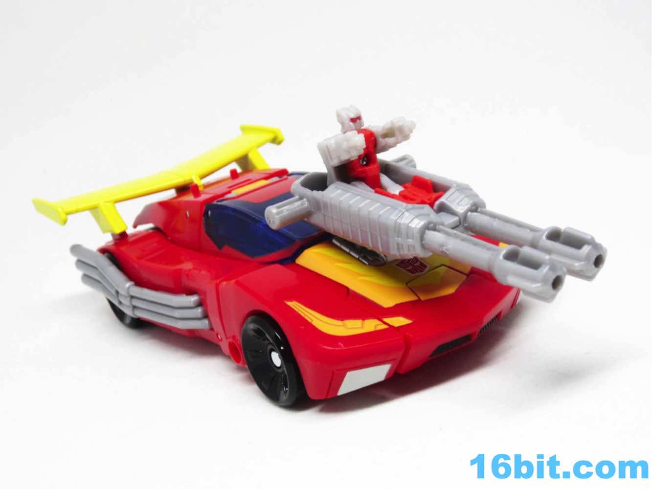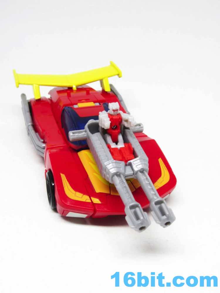 This 1.5-inch Firedrive (Firebolt update) robot is a good update of Firebolt, Hot Rod's original Targetmaster companion from the 1980s. He looks more than a little like the animation model for the gun, but is colored differently. Hasbro wisely eschewed painting this little guy, as he's going to spending most of his time either as a vehicle driver or as Hot Rod's head. Either way, you aren't going to be looking at him much. The arms and legs do their thing as always, and the figure holds together nicely. There's really not much to say about it other than it looks good and it functions well.