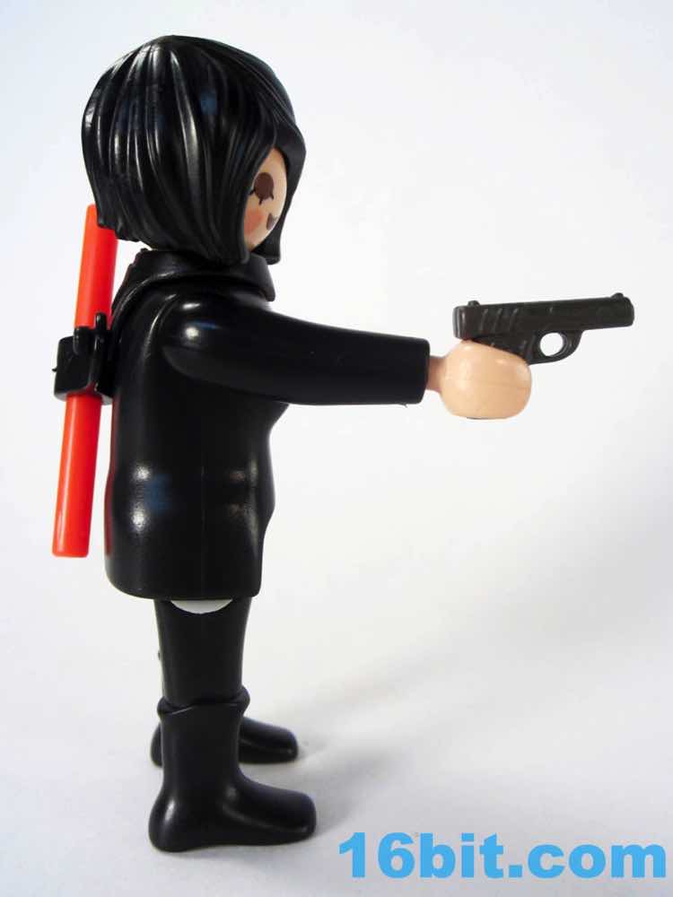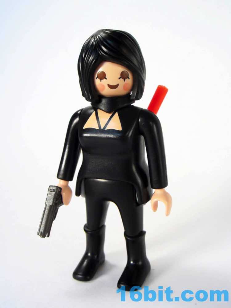 Licensing hasn't been a historical part of Playmobil's bag - once in a while they'll do a special set for somebody, but rarely do they do studio tie-ins. We got dinosaurs, but not Jurassic Park. Similarly, a catch-all spy figure makes sense - you don't pay royalties on an Adventuress but there's a guarantee and a royalty if you wanted Aeon Flux toys. It's likely not in Playmobil's best interest for a variety of reasons, not the least of which being that the cartoon is familiar mostly to toy collecting insomniacs in their 30s and 40s or the women who marry them... and nobody bothered to see the live-action movie that inspired this piece.