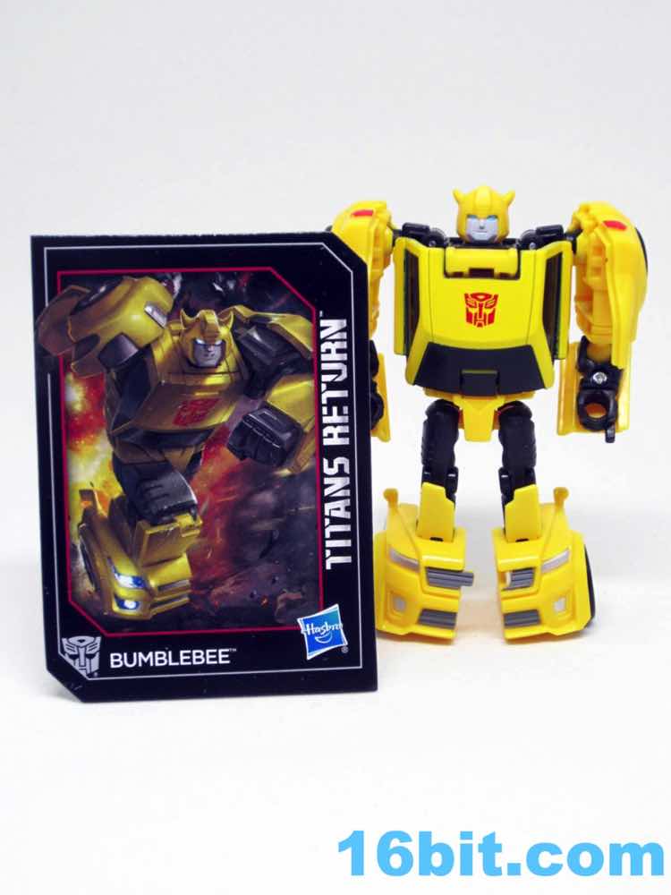 The sheer quantity of toys with this name is amazing, with Titans ReturnBumblebee being yet another take on the classic character. In the USA alone, we've had at least six Legends-ish sized smaller transforming Bumblebees over the last decade, and I assume we'll see this new one redecorated a couple of times too. Hasbro just loves to do it since going from nearly all of 1995 to 2006 without a single toy with that name.
