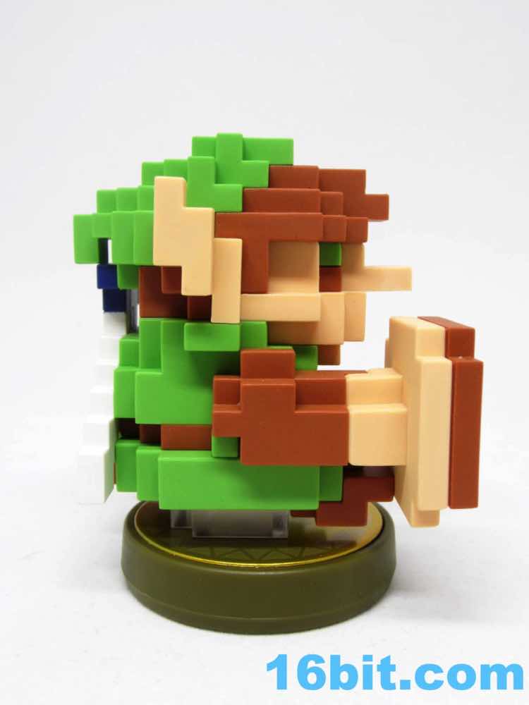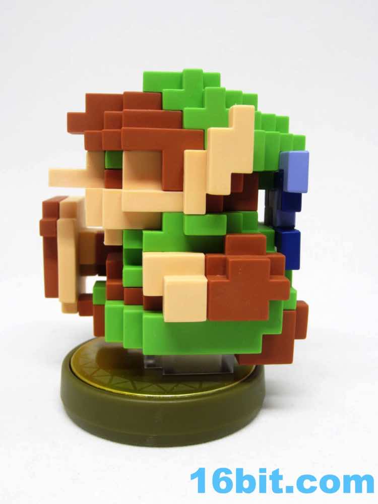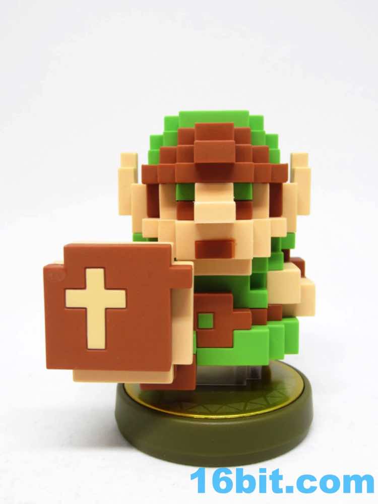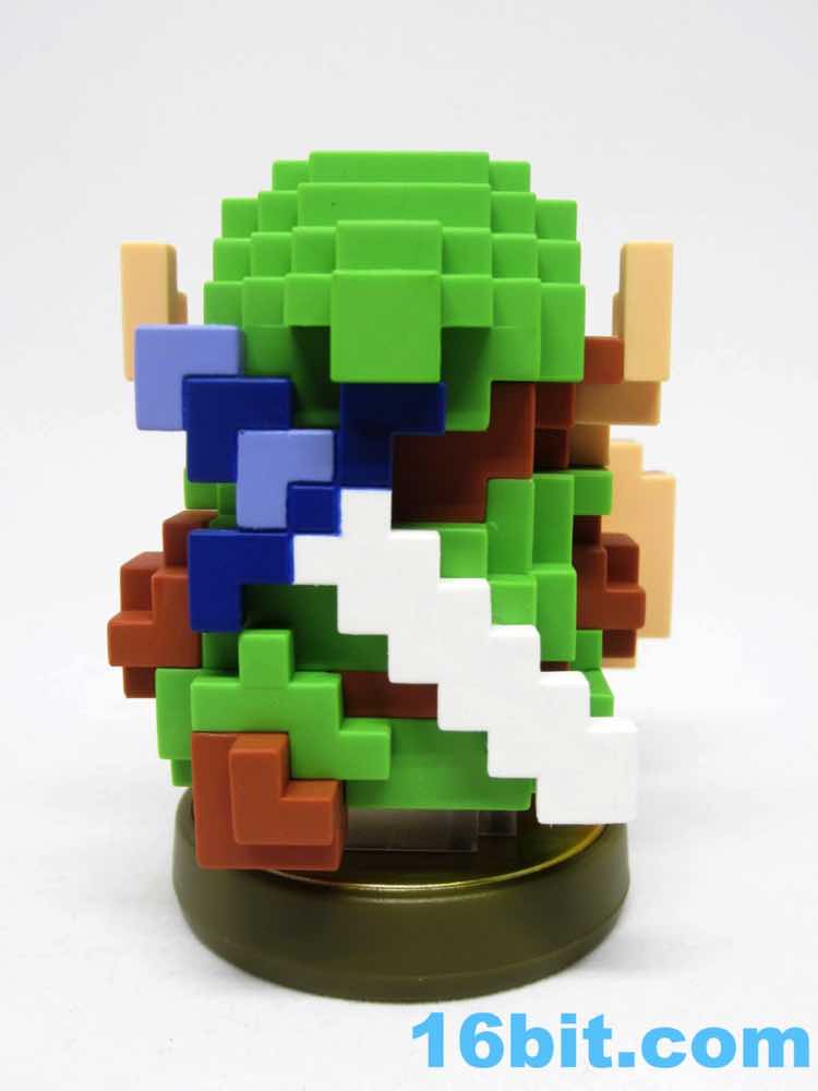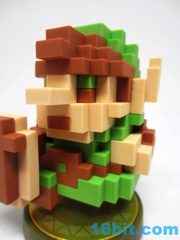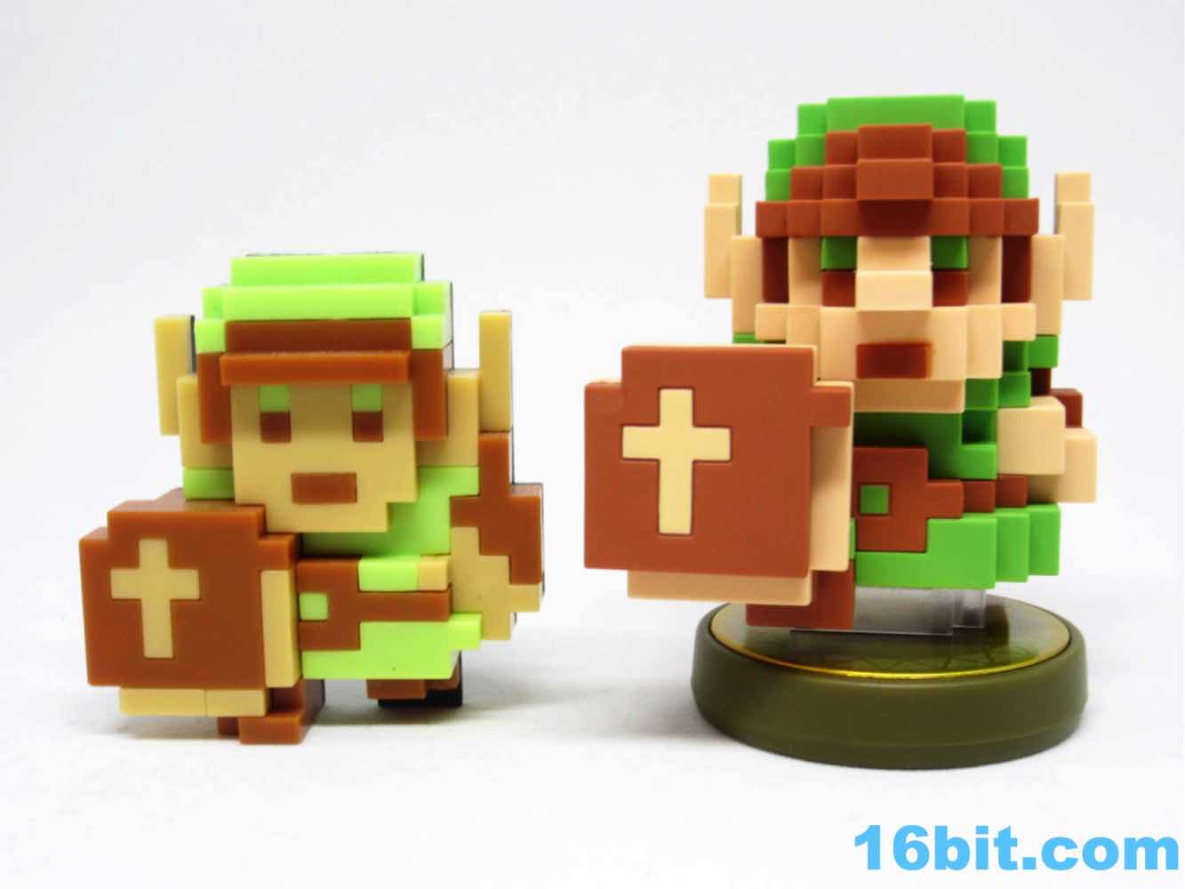What I find really striking is how Nintendo managed to design this three-dimensional figure to take two two-dimensional sprites and merge them into a plausible rendering of the character. The distinctive long nose sticks out a bit between the eyes, but oddly it actually works. The arms are similar to how they are in the game, but the one holding the shield - and the shield itself. Most of the pixels are where they should be, with few liberties taken to really flesh out this voxel-ish figure. It's worth noting the color doesn't quite match the bulk of the game or the aforementioned Jakks Pacific figure, giving us a slightly less tan Link with a darker green outfit. It's a different take on the character than you usually see in-game, either that or it's something we're going to see in a game that we don't know about just yet.