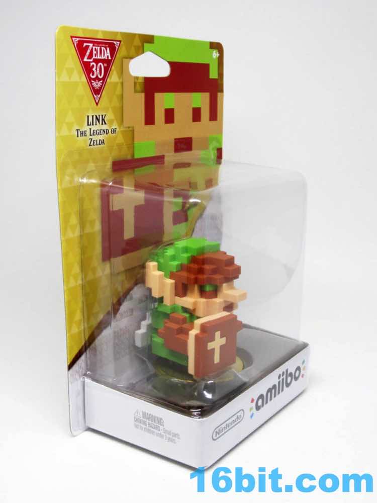 It's rare - very rare - that Nintendo releases a wave of Amiibo that aren't tied in to a specific game. But here we are! This 8-Bit The Legend of Zelda Link can be used with a number of games, but was not created for any one specific game that we know of. The various Link Amiibo figures seem to serve a similar purpose across numerous games, yet for Zelda's 30th Anniversary we were gifted 3 packages - one with 2 figures - and for all we know they'll have specific powers in upcoming software. But for now, we don't know, so we'll wait and see what all happens there. I can say it's a neat figure and a distinctive take on the design, a departure from Jakks Pacific's take on 8-Bit Link [FOTD #1,320] about a year ago. They're both clearly cut from the same cloth, but Nintendo took a little more care to bringing Link to the third dimension - taking a few liberties in the conversion process.