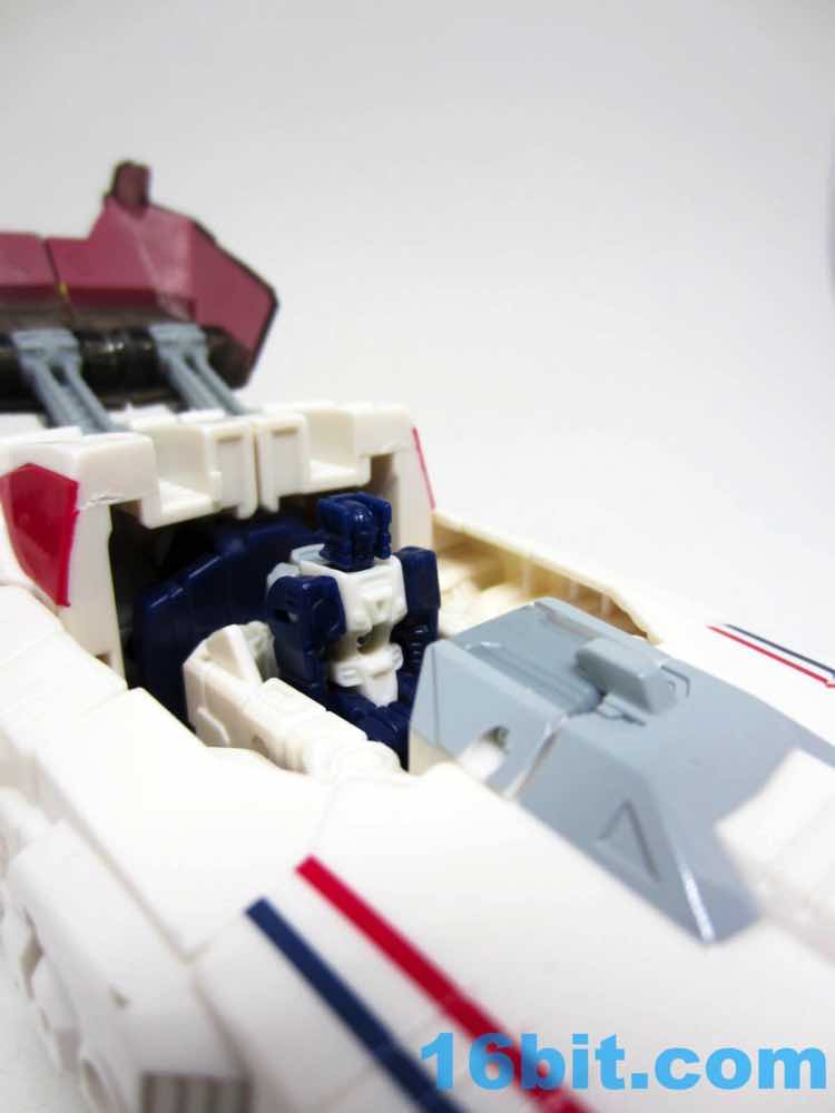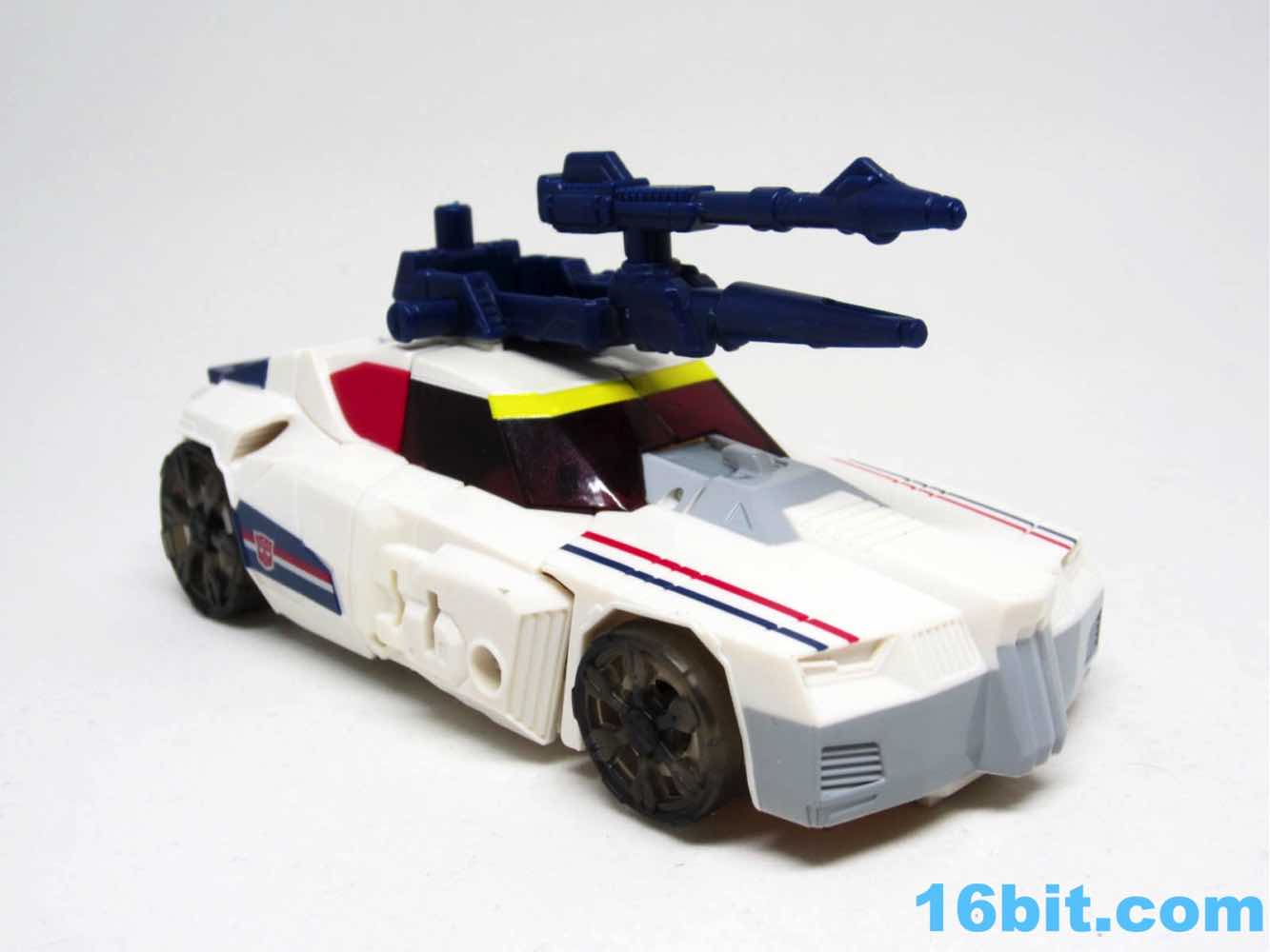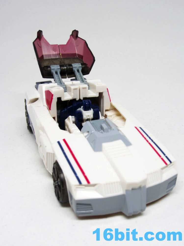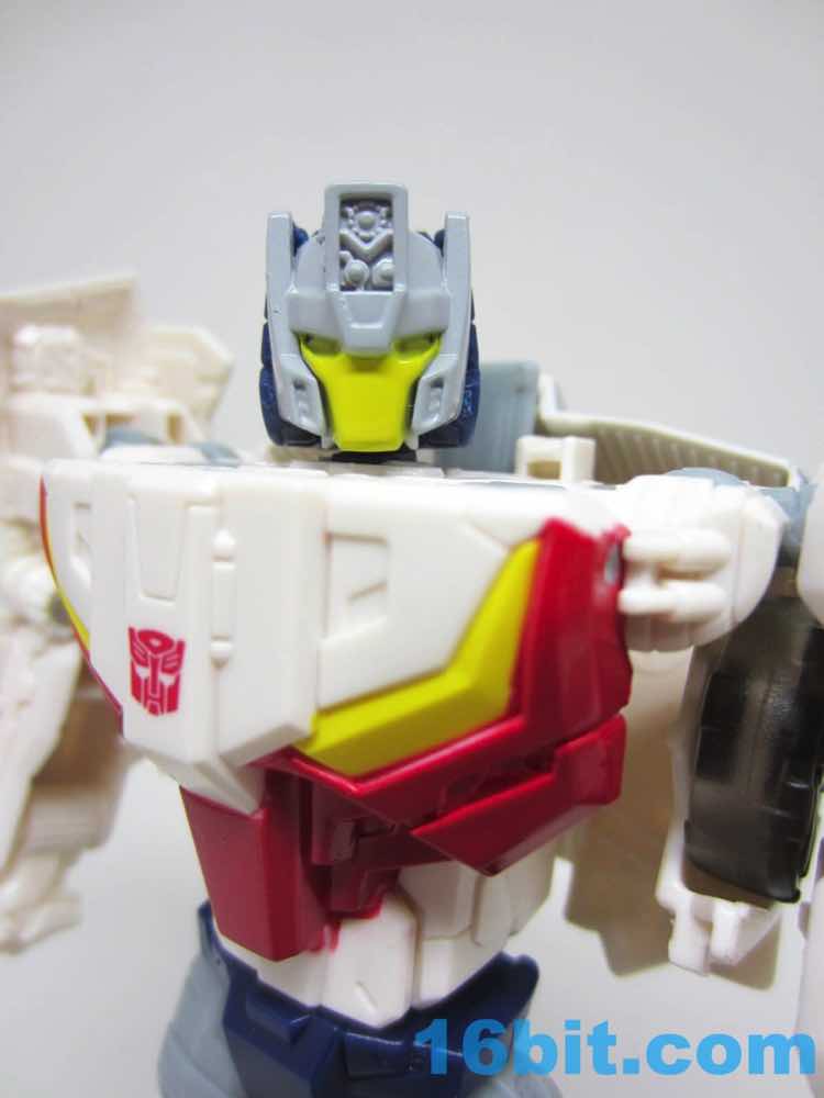 The head mode is a good update of the G1 toy with a bland face surrounded by a grey helmet. Comic appearances added some more color - a darker helmet, differently colored eyes - so it's a good update of the original concept. You may not want the original concept, but it's a good update of it. If you want an IDW version of him where he has probably evolved into one of the most hated characters in the book, you'd be better off either waiting or getting the redeco of Cybertron Hot Shot from the Walmart exclusive waves which followed in the wake of the first live-action movie. It's also not perfect.