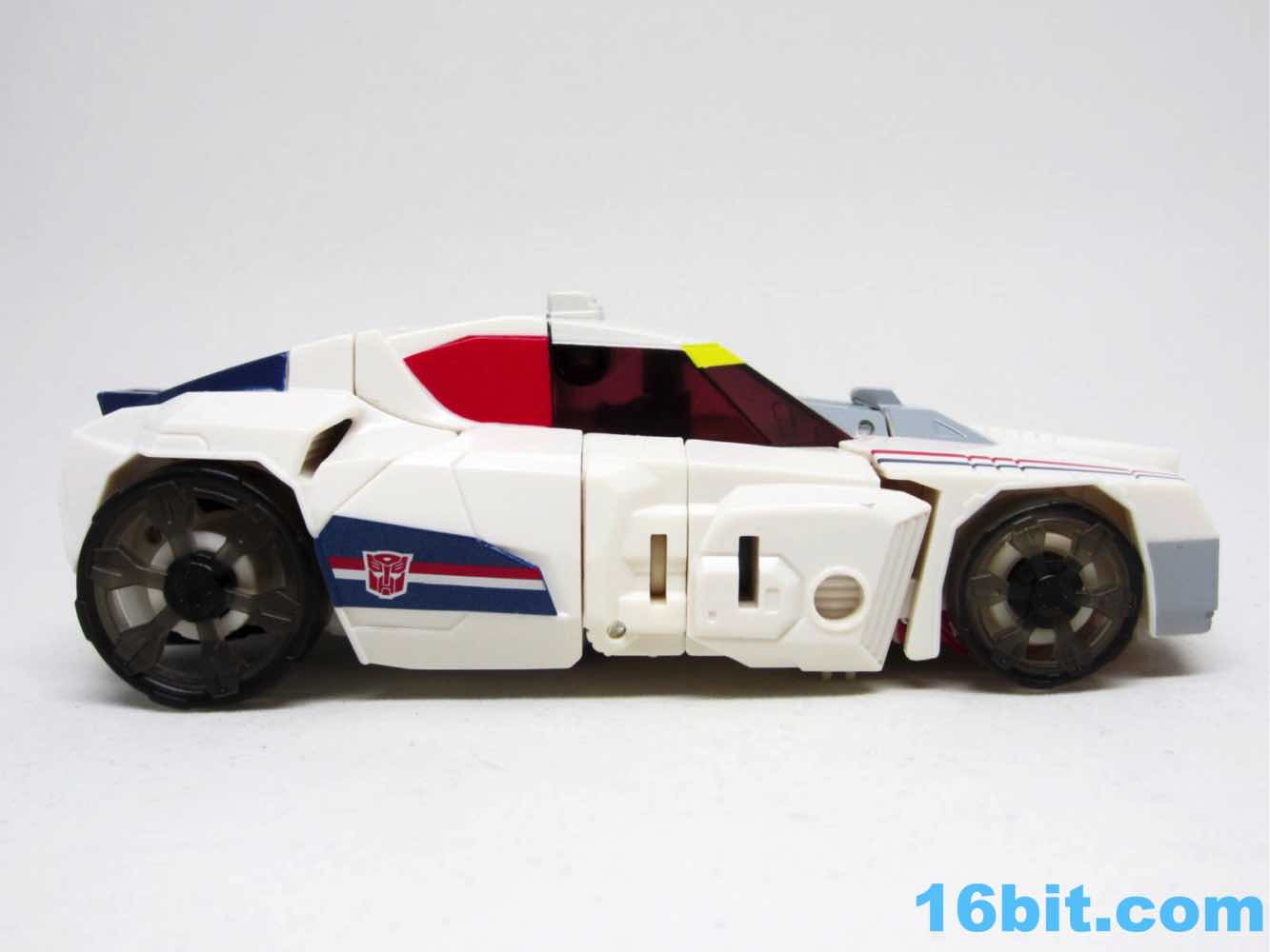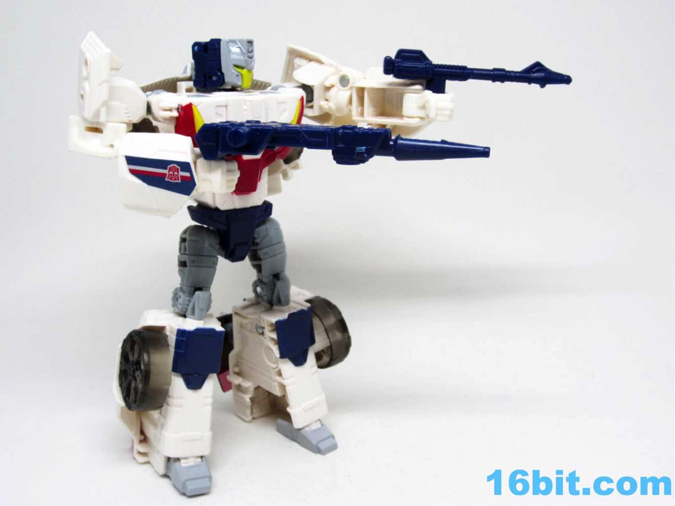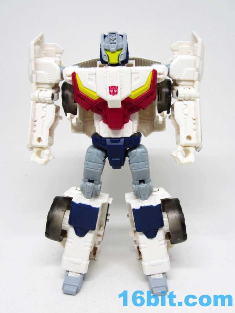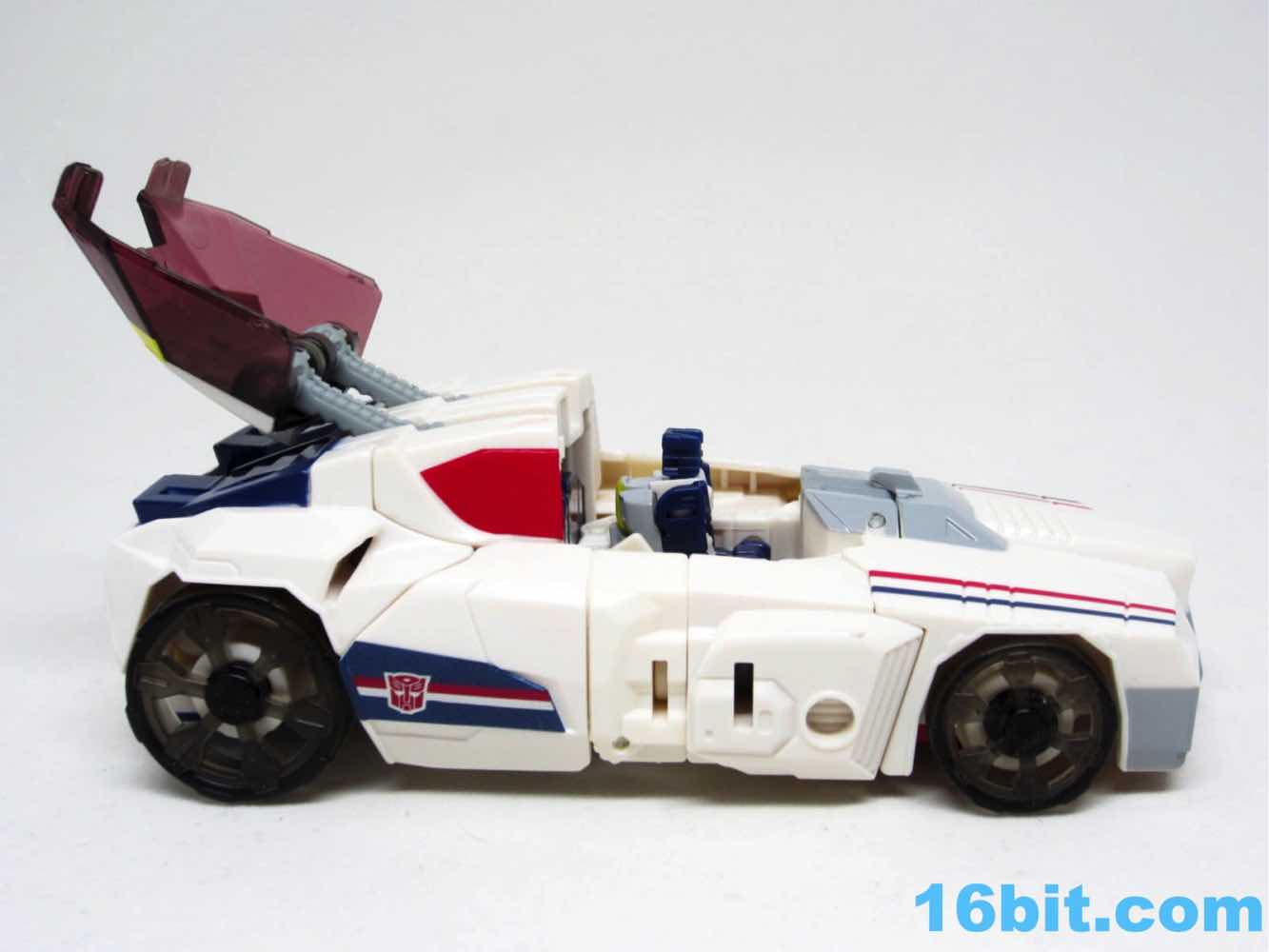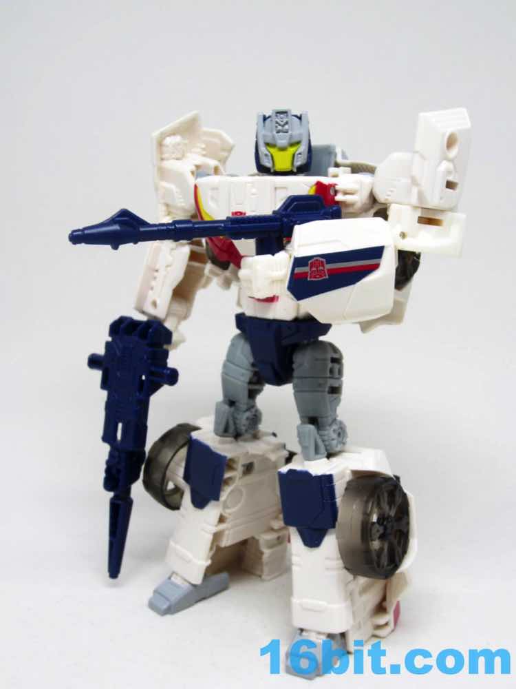 Since I never had the original as a kid, I don't feel a great loss for the Powermaster gimmick or a general change of the look of the robot. The door shoulder wings are gone, the various rally markings are modified to drop the words - probably smart for alien robots sold in multiple Earthly toy markets - with colors that do a good job matching the original toy. That is, when he has color - the original toy had bright reds and dark blues, plus grey toes. The new one keeps the grey toes, but the blue arms are now white. The blue and red lower legs? Also white. They even added more white to the torso. Were it a new character, you'd probably dig it for being a new thing - but as an update for a character with personality that people now recognize and potentially even want to own? You're probably going to need to do some customizing to be happy.