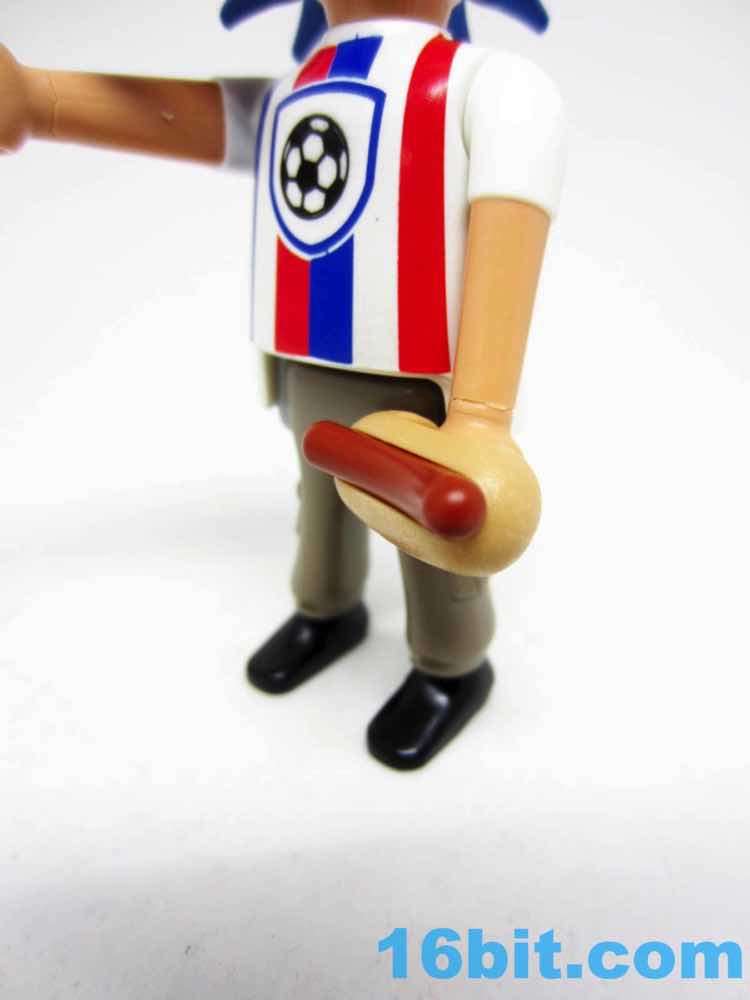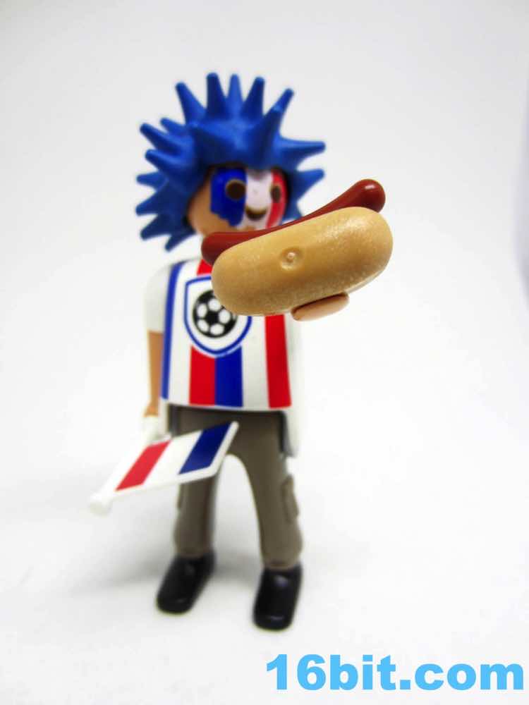 The gear is as good as you've come to expect, although you may not necessarily need them. A flag from France is pretty nice to have, and it drives home the point that this isn't someone who designed their American shirt backward. The hair sits on the head nicely, and the hot dog is a bit of a marvel. You'll find it in other sets as well, but if you haven't you should know that it's removable from the bun, the bun has a grip on it, and the diameter of the sausage part is precisely the right size to be gripped by a Playmobil figure hand. I don't think you could ask for much more than that, other than perhaps some suds for the unruly crowds.
