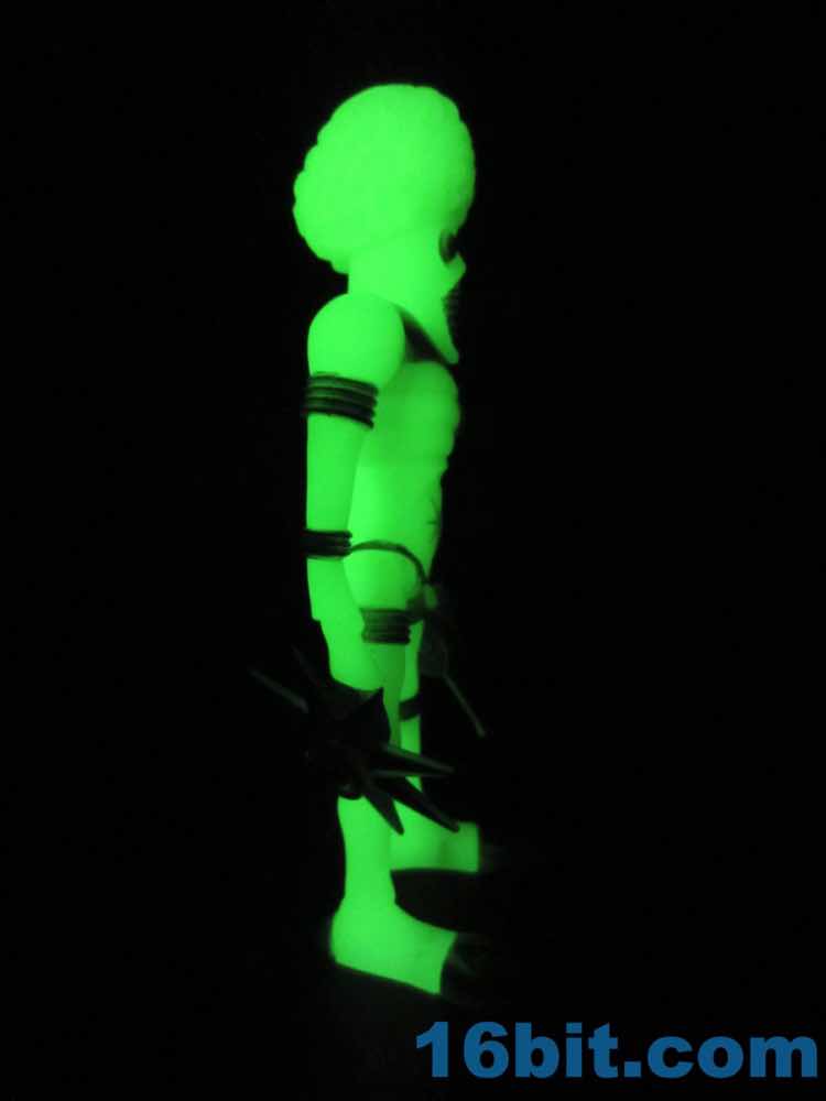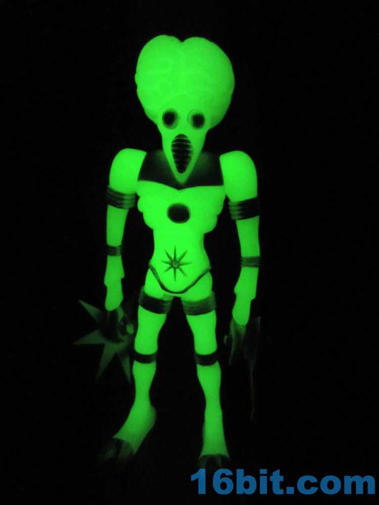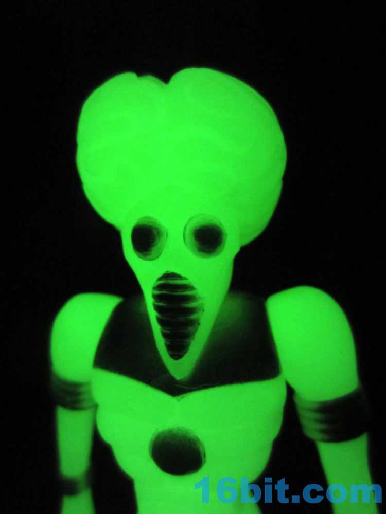 For those keeping track at home, the first few Orbitron figures came out in 2012 with the painted one hitting in 2013. Orbitron can be had in clear pink, purple, and blue as well as a regular painted version and the Onell exclusive Diversus version - and this glow, and the White Star. That's a grand total of seven so far - which isn't quite as many as we've had for Xodiac, the reigning champ at nine flavors to date. I assume most fans don't have one of each alien, let alone all of the flavors, so odds are you aren't yet suffering from an overabundance of these retro alien toys. But even if you are, surely your glow-in-the-dark collection needs a little bolstering.