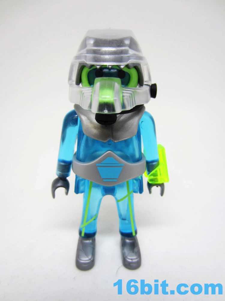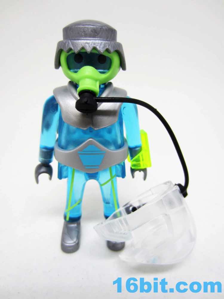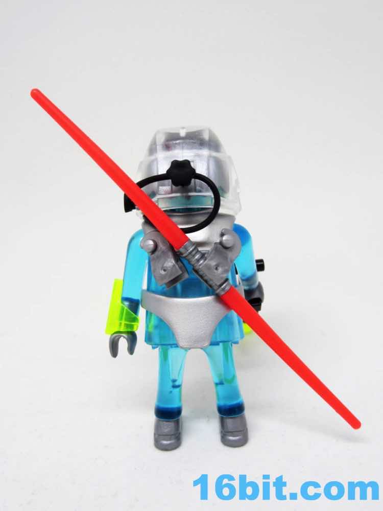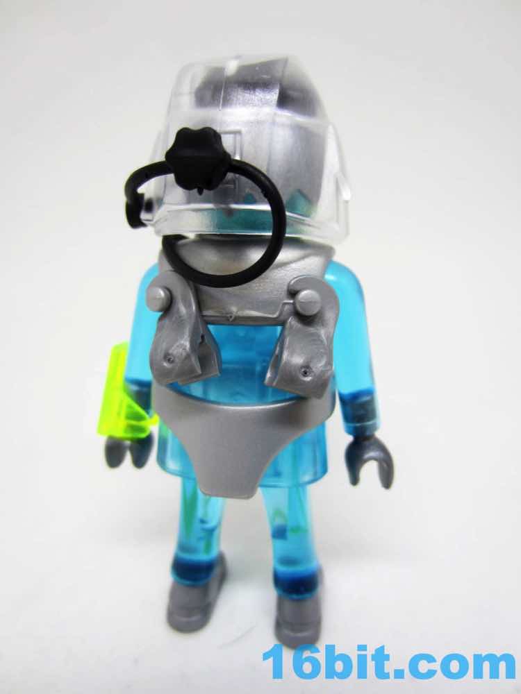 What really struck me as unique with this figure was that it's clear. Playmobil rarely - possibly only a couple of times - cranked out a figure of some sort of clear plastic. The body, arms, and legs are clear blue similar to the first iMacs. Remember those? Ask your parents. The helmet is clear colorless plastic, while the hands and feet are a grey silver color - I don't doubt this is to help prevent cracks over time. Clear plastic doesn't always hold up over time, especially when it's not soft PVC. Heck, even soft PVC is prone to problems like discoloration.