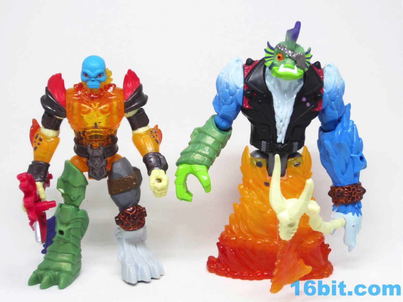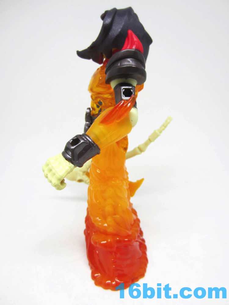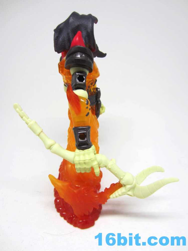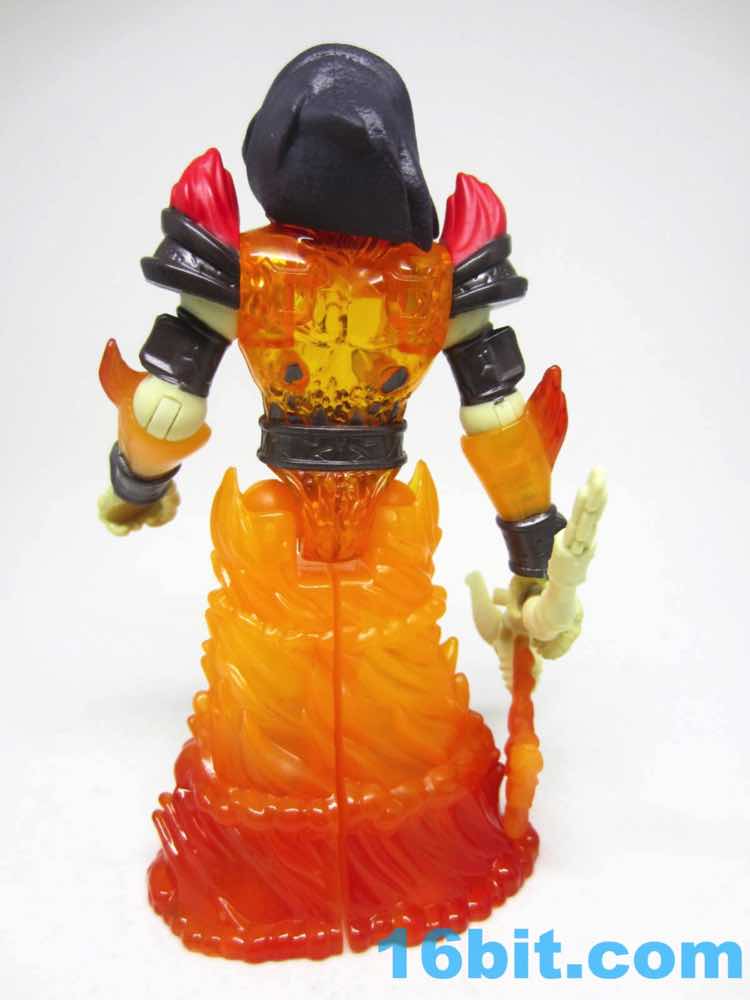 The sculpting is really nice, with flames and little rock parts painted to add some "oomph" to the already decent design. The implication that some parts of the flame monster are slowly cooling certainly tells an interesting story, which is continued by some sort of dragon skull spine scythe which breathes fire. Now there's an original idea - the weapon has a peg to plug on his back or fist, plus there's a grip so his right hand could carry it around to club a seal or whatever it is he might do. The figure has no problems standing, but he's not going to do a lot of sitting and there aren't any real problems interacting with the accessory.
