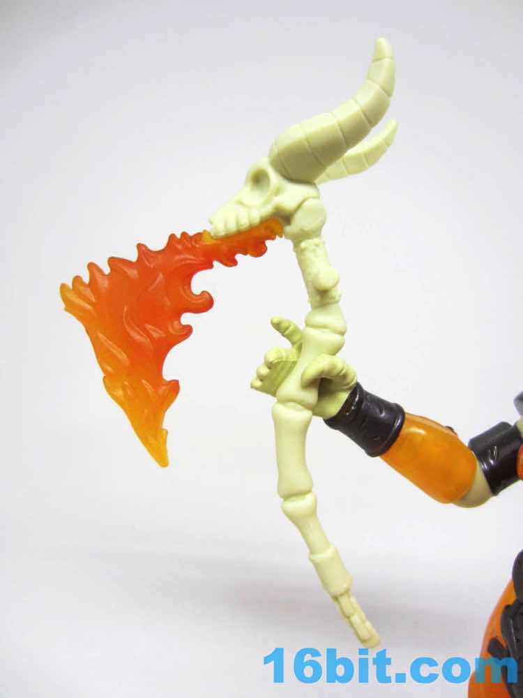 For the going rate - even on the secondary market - this is a neat piece. You won't see many strange figures like this on the market these days, and given the whole mash-up motif it seems bizarre that the figure feels like it was cobbled together from three other things right out of the box. The flames, the armor, the bones, and the accessory fit together to look like something a kid cobble together from a bin of parts. I assume it wouldn't have sold all that well were it given a proper wide release, but as a thing dumped in Europe that figure dorks will argue over/chase down, it's a gem. It's the kind of thing you'll want to show your toy collecting buddies and say "look what you don't have."