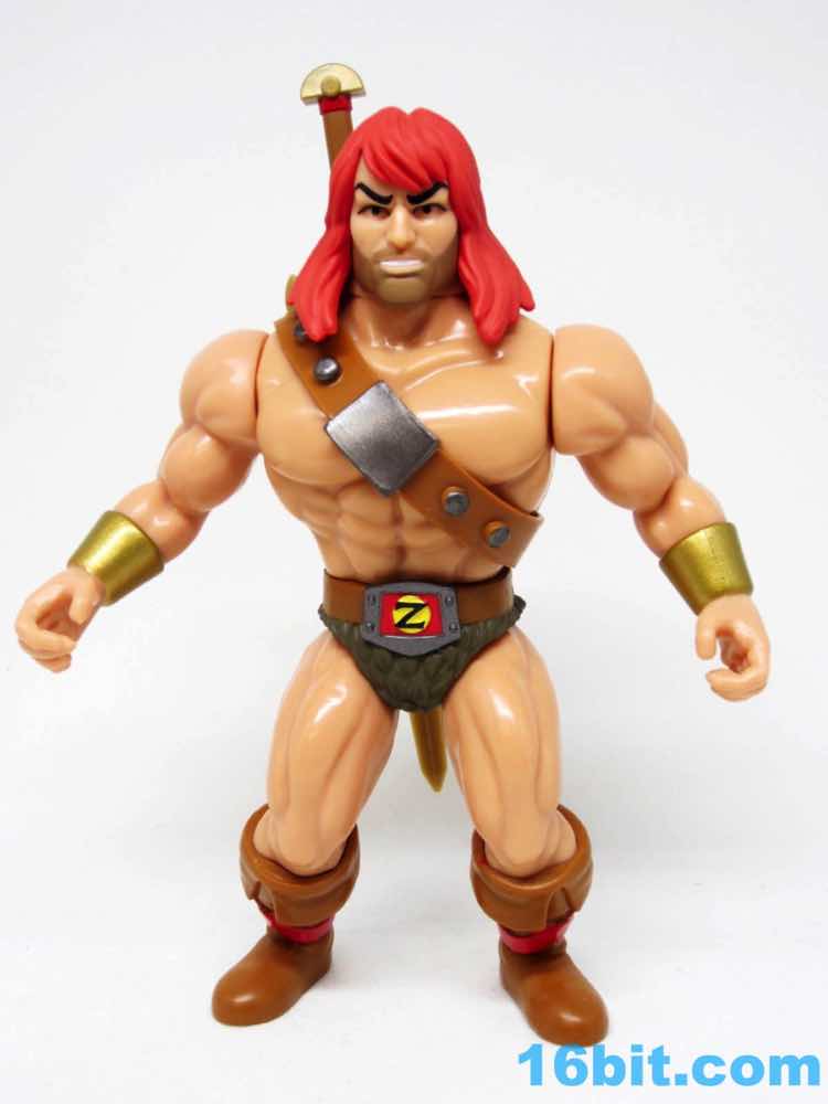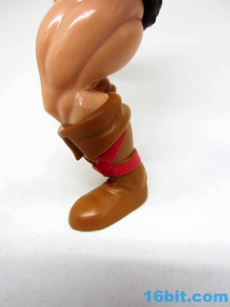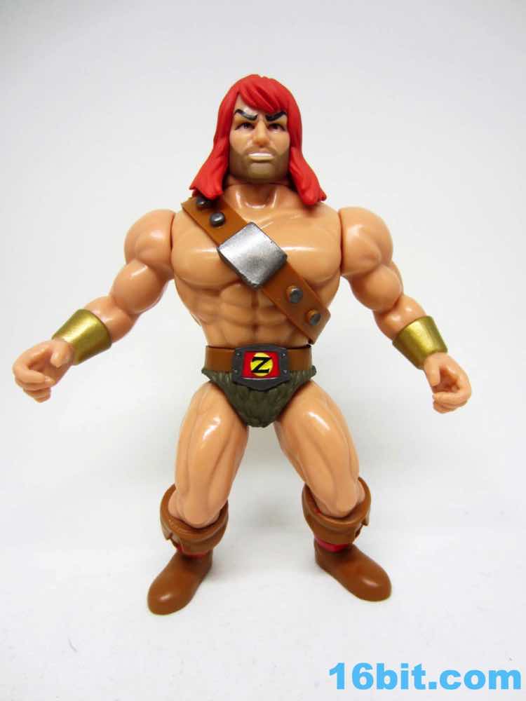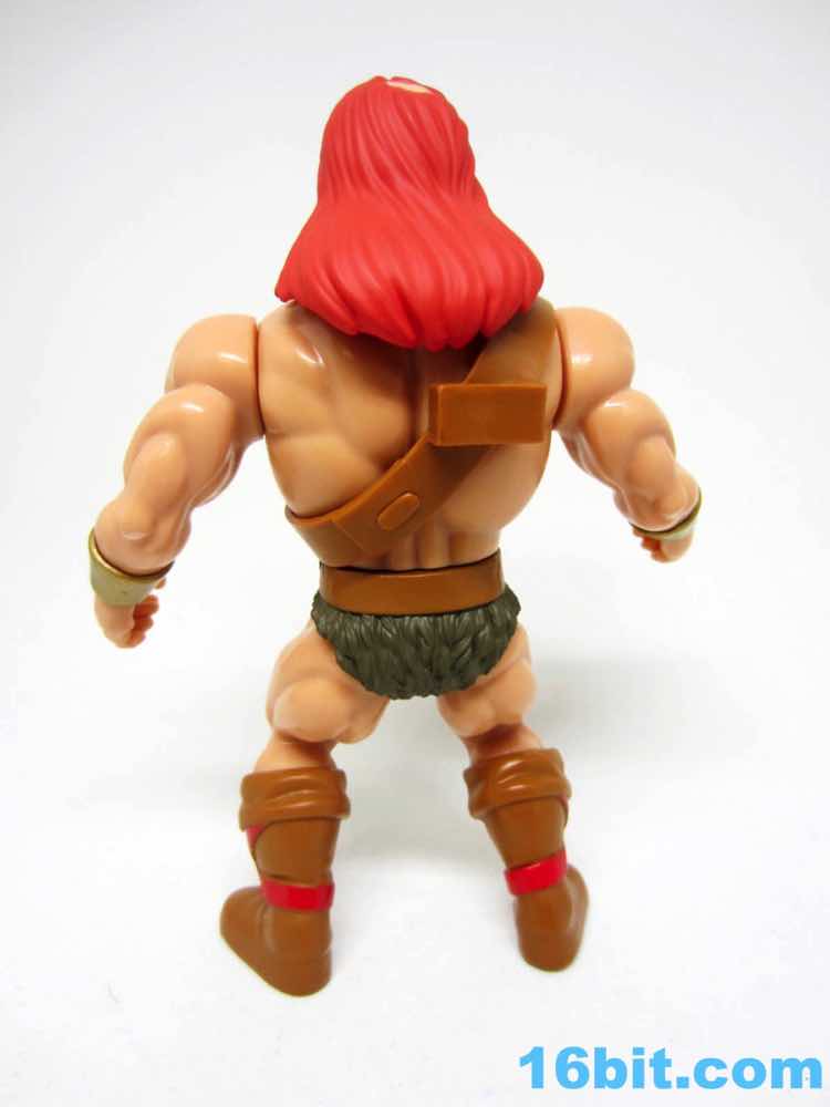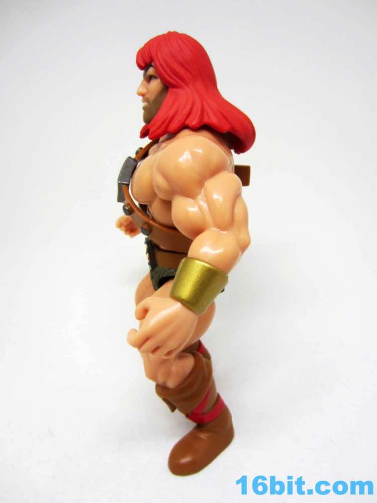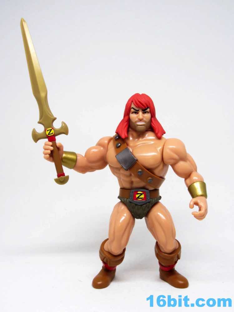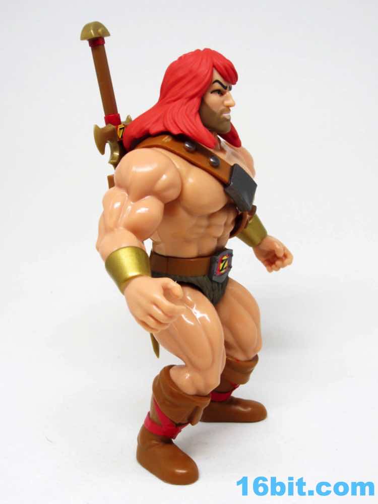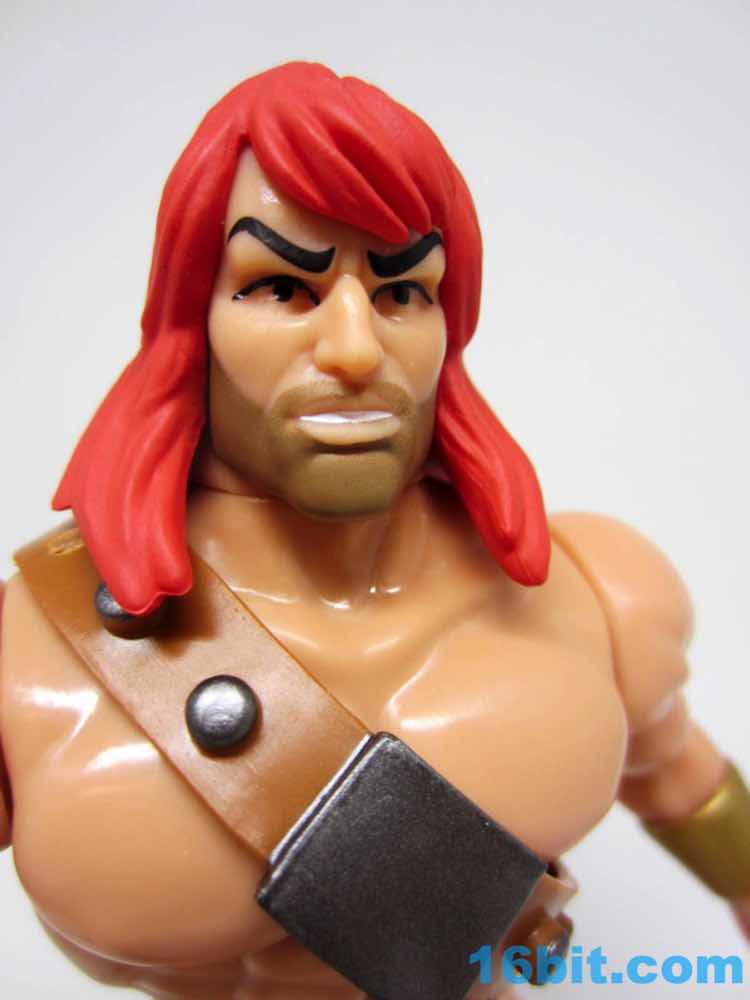 Standing almost 6-inches high, this chunky figure stands well and looks a lot like a 1980s action figure - but it's not one. The head is hard plastic, and the long red hair features a bald spot. His sword is long and pointy, not flexible or rounded off for children. You can, however, sling it in a loop in his bandolier. The entire figure feels sturdy and thick, even the hands are on the stiff side. As such, you may need to fight it a bit to get him to grip his awesome sword.
