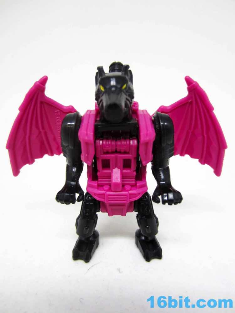 The winged werewolf mode is also neat. It's basically the dragon mode standing on two legs with the more dragony bits tucked out of the way, with a nice wolf head and a decent set of painted eyes. Sure, it's corny, but it's fun. We don't get a lot of micro toys or beast-to-beast toys, so seeing something with fur and scales and leathery wings on a single toy have two decent creature modes makes for a lot of fun. Transformation is simple enough that you probably won't have too many problems with it.