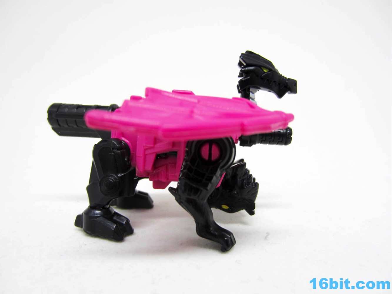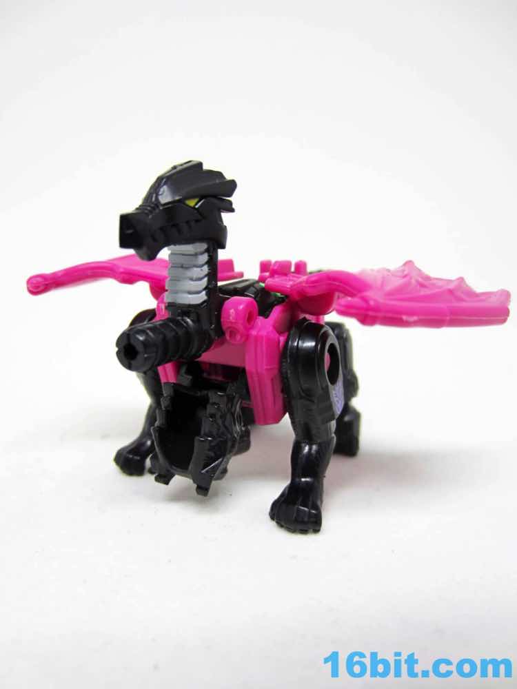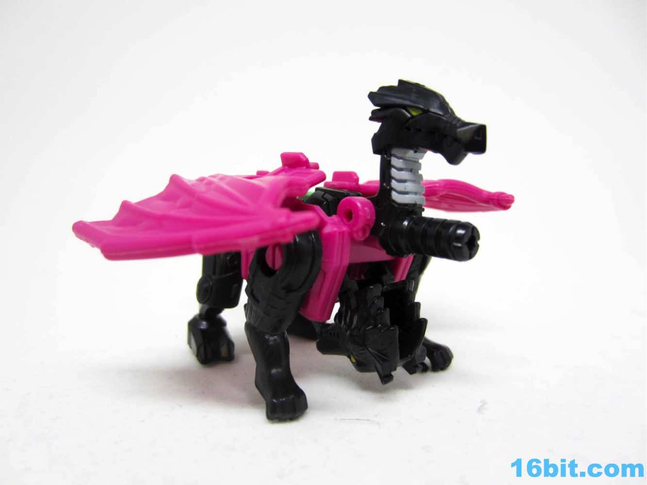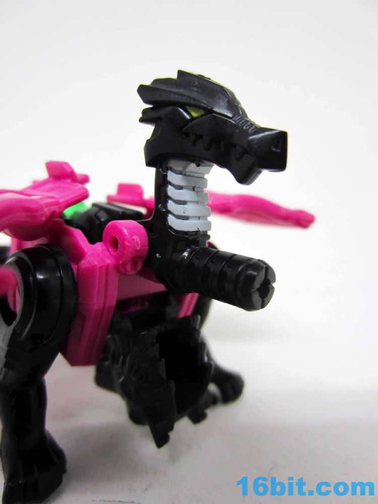 The dragon mode is wild. You'll love it. The black head and pink wings may remind you of another famous dragon, plus they painted the scales of its neck grey and it has lovely yellow eyes. How can you not like this? There's a cannon in its neck - that's not ideal - but it's very fun and cute and all those groovy things. A Titan Master robot can sit on his back, too, so this mode should be enough to warrant spending the five bucks.
