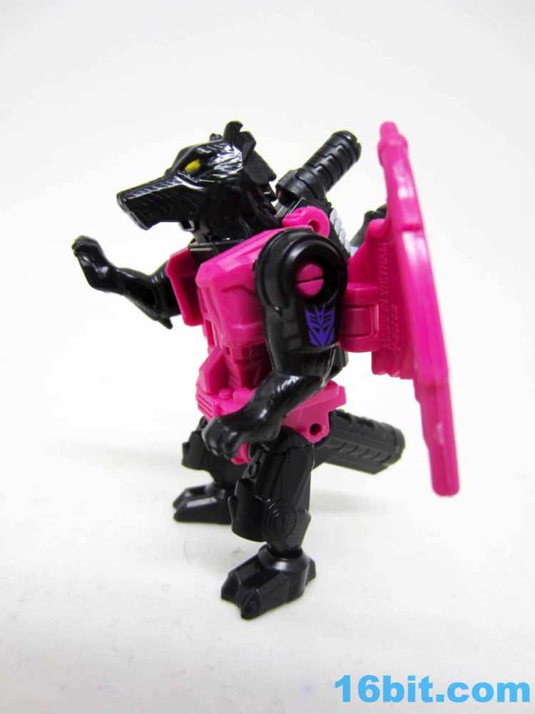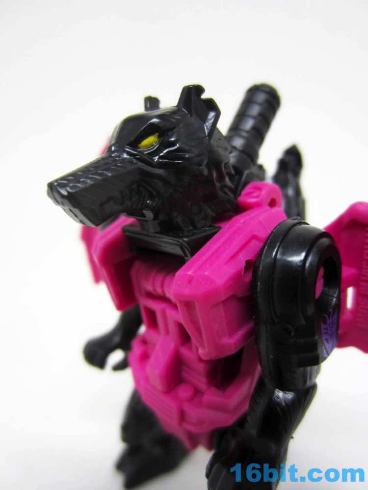 This 1.5-inch robot looks a little like a downsized Fangry and a little like his original Headmasters companion Brisko. The colors are similar, but the pink parts and black parts don't necessarily match up. New Fangry's head is unpainted , and so is the rest of him save for the faceplate backpack. Articulation is good, the detail is excellent at the size, and he functions exactly as well as all the rest. You won't be impressed, nor will you be disappointed.