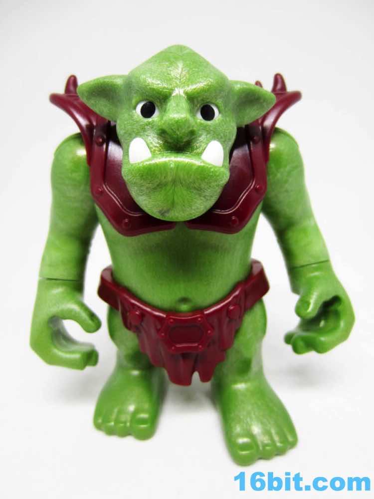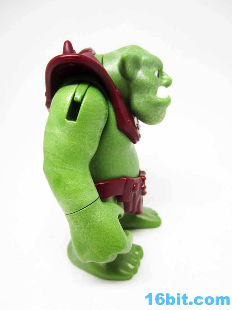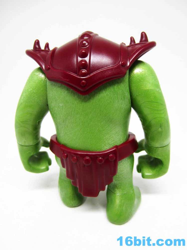 This is one of two large trolls - or ogres, whatever - you can pick up as I write this. A purple one is sold direct to consumer in a baggie, this green one comes in the boxed set. The design is interesting, but the detail is somewhat soft. It feels like a pastiche of the fantasy creatures of 2002, with elements of Shrek and Tolkien-esque bits cobbled together to give us a larger creature that's wholly new. The universal jointed shoulders are nice, plus his head and wrists all turn too. There's no leg articulation to speak of, but the feet are hollow - this allows him to "stomp" small animals, food, money, and other things without falling over. The items are carefully hidden underfoot, which was a feature I've seen on a few other recent releases. I assume this is intentional but it could just be a cost-cutting measure.