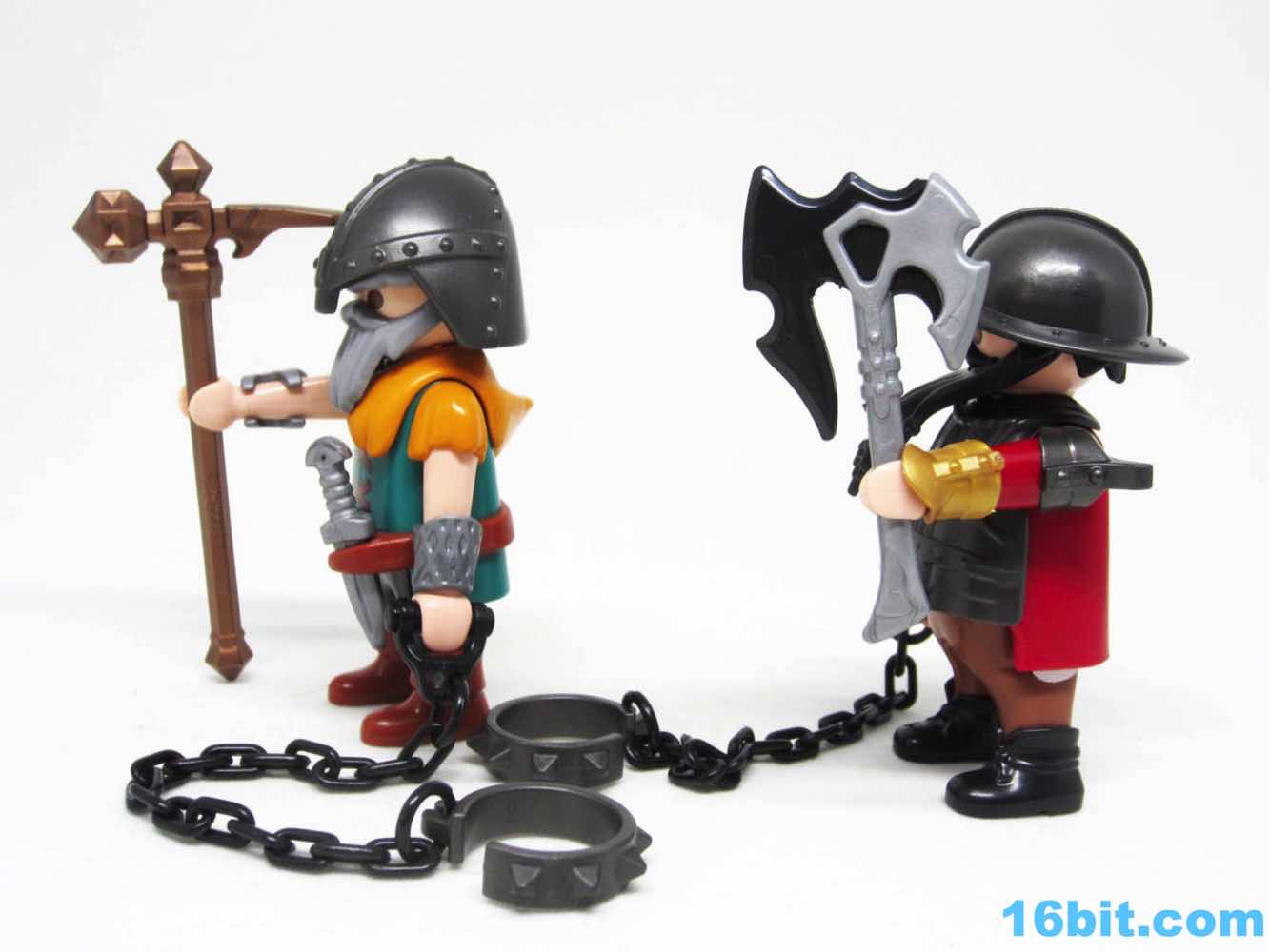 The dwarves are simpler, but good. Each one has nifty "short legs" you'll only see on other trolls as far as I know, but most of the other elements are pretty familiar. Clip-in wrist armor, a loop to store a dagger, and super swell beards make them a lot of fun. The one on the left is one of my favorite Playmobil figures I've seen in the last year, which is no small order. I love the green shirt, the orange sleeves, the brown boots, and the pointed grey beard. Even better - the giant bronze hammer. It's a little flexible, and it looks superb. I don't have another giant hammer, so this distinctive accessory arguably made the set worth purchasing in and of itself. This is a tip-top dwarf.