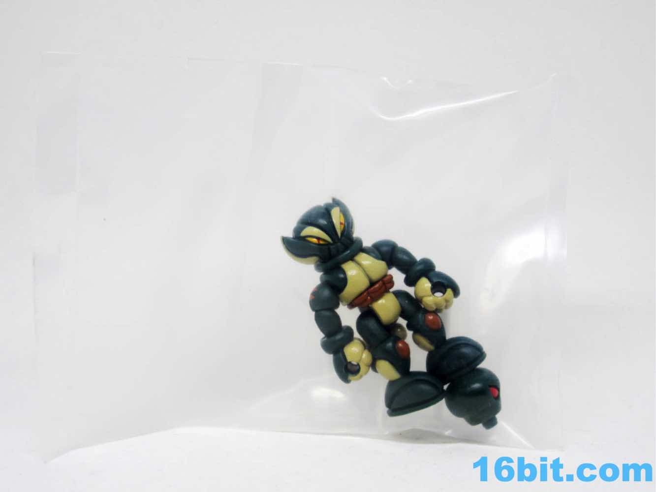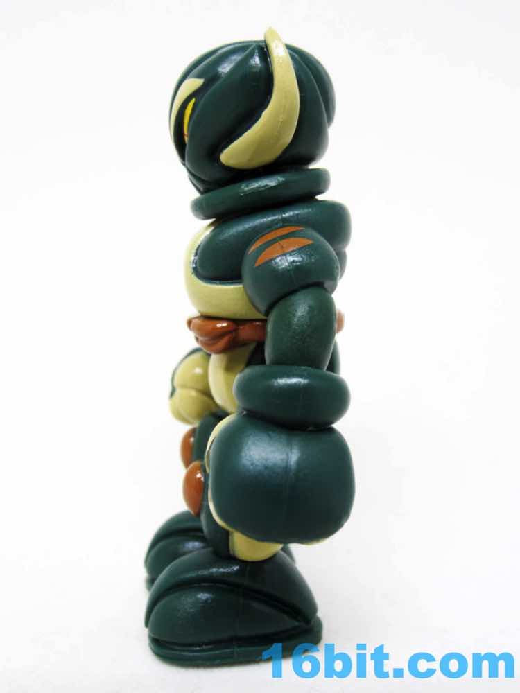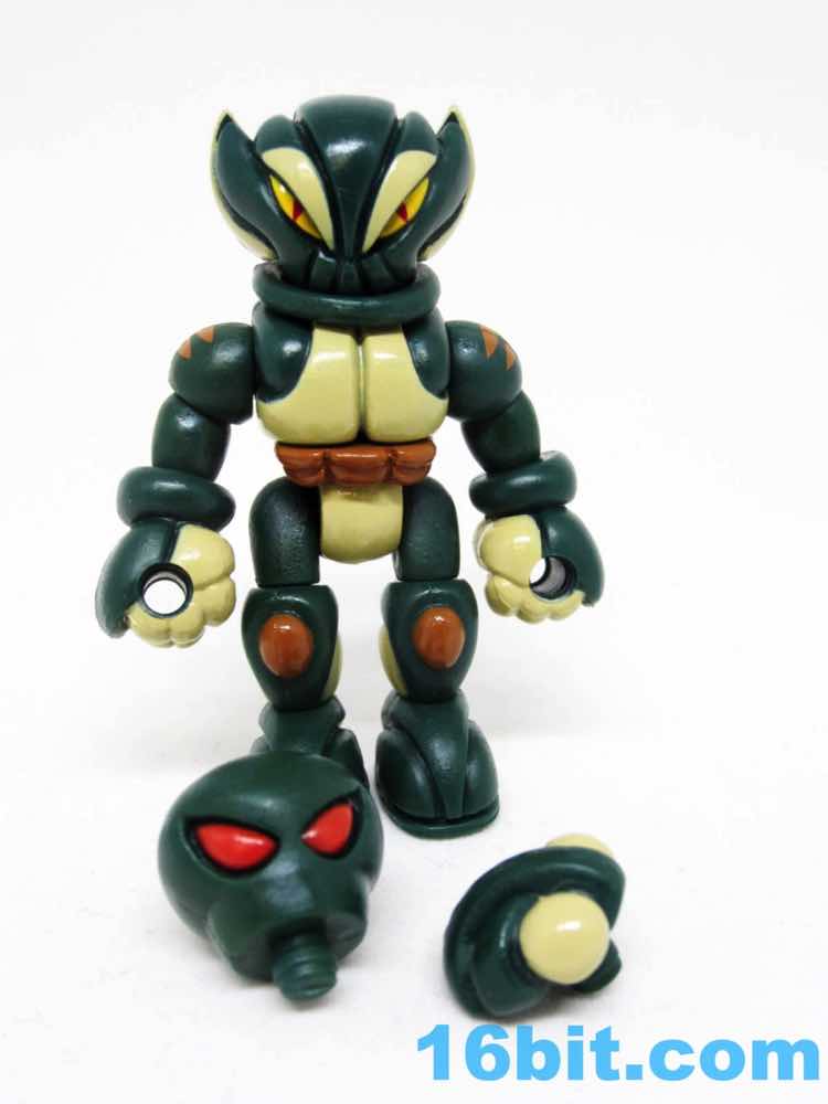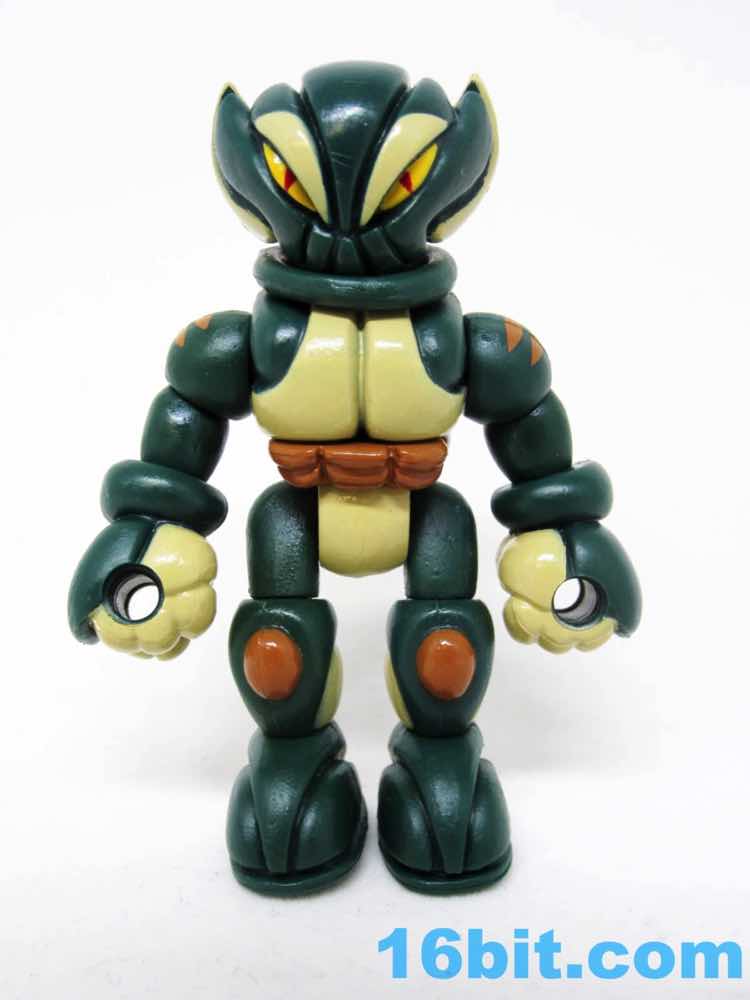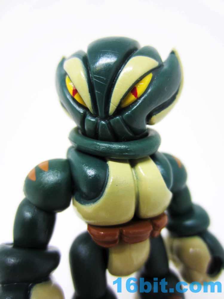 As one of many, many homage figures in 2016 we got the Gremlins-inspired Quallerran Lingrem along with a companion figure that looked vaguely like Mogwai. (The creature, not the band.) This one doesn't appear to ape any specific color of a specific or obvious (to me) product, but it doesn't seem all that far off from the creature Stripe from the first movie. Maybe it's based on the NES game, or a certain product, but a far as I can tell it's just the Gremliniest Noboto money can buy. The character has orange stripes on his shoulders and matching kneecaps, plus a swell belt. Green plastic is largely left unpainted except for some tan bits on the chest, fingers, calf muscle areas, and of course the face.
