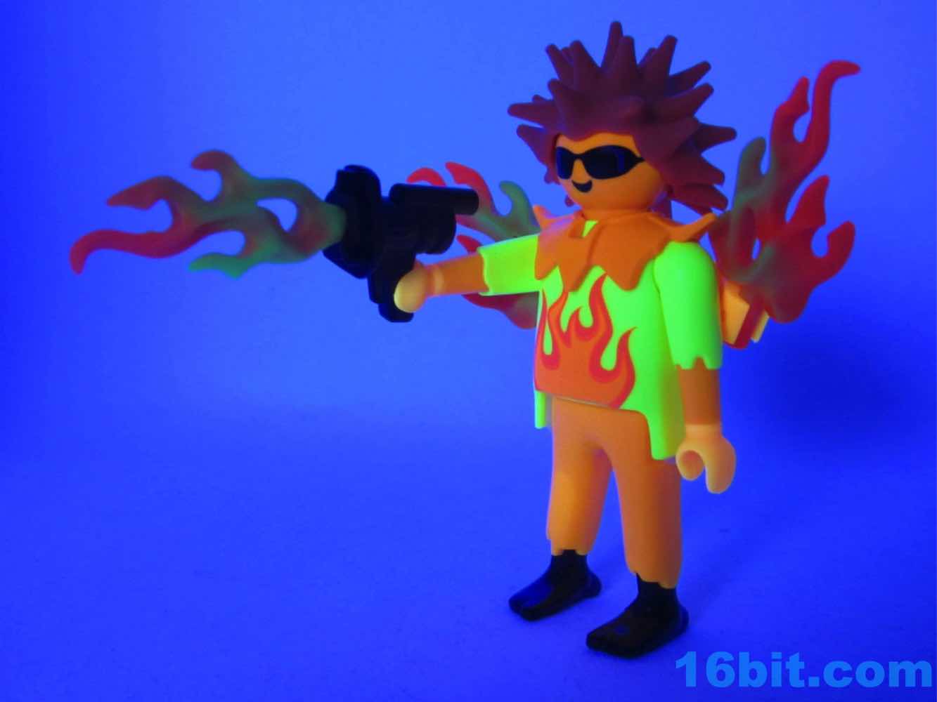 I saw the Flame Warrior and my first reaction was "This isn't Pyro from X-Men." It's close though. It wouldn't surprise me if the fact that it has flaming orange skin may result in it being repurposed for politically charged custom figures, but as-is it's a winner. If you have a black light, this is Lord God King Reactive Agent - the fire figure shines so brightly I initially thought my black light LED bulb was replaced by a bright white one that shoots out dreams and starlight. If you have a room with a black light, or know someone who does, get them this figure immediately.