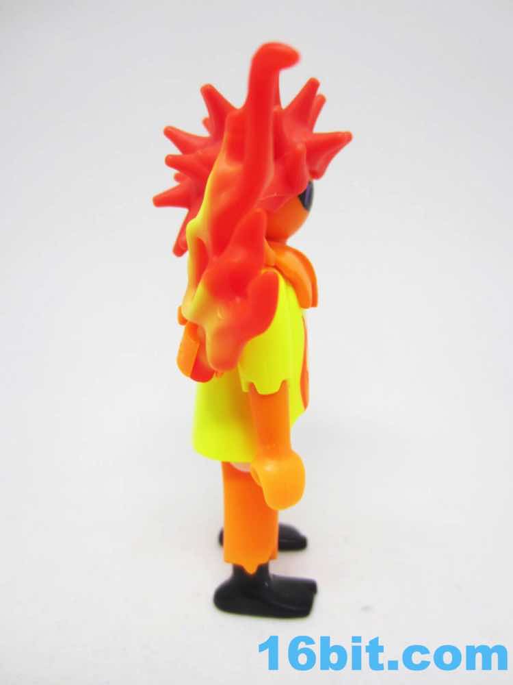 Playmobil figure construction owes much to what has come before. The figure has a bat-like collar armor piece with pegs on the back which have hooks on it, very much like the Space Warrior [FOTD #1,618]. Instead of weapon hooks, here they serve as flame storage. Dual-color injection molded flames are absolutely beautiful, and Playmobil stuck two on his back and a third in the barrel of his blaster.