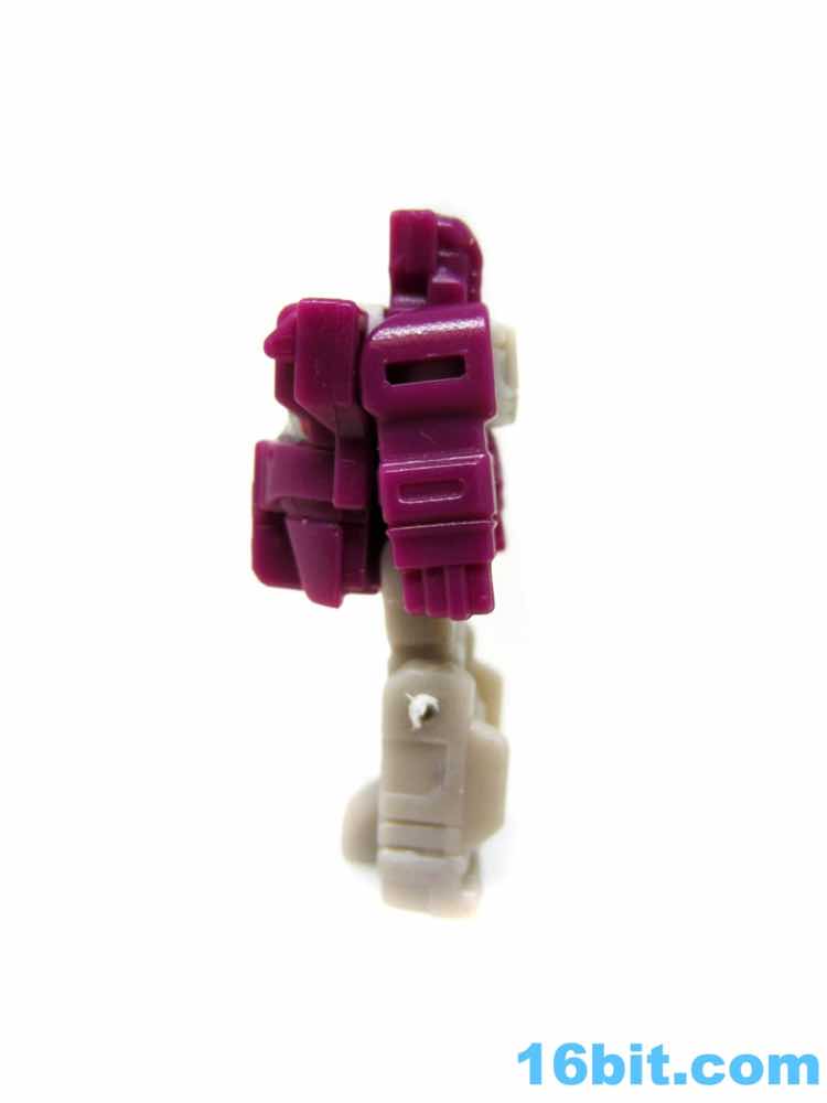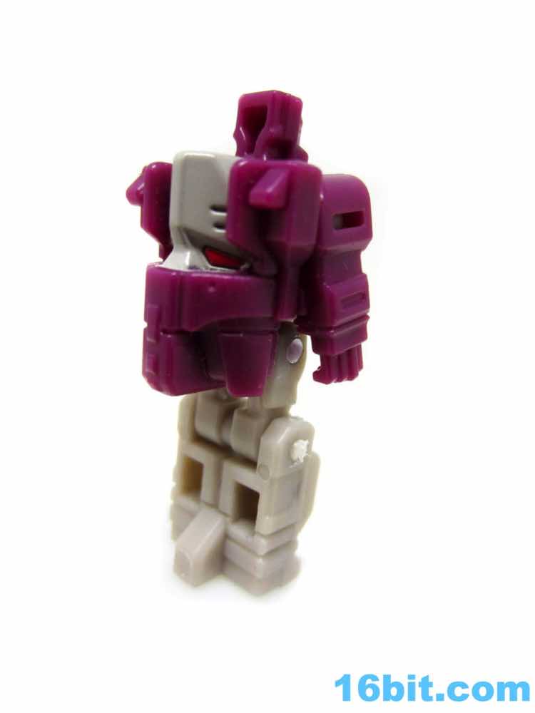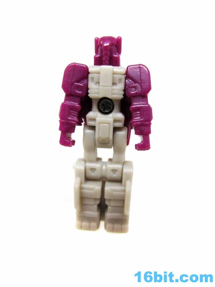 This 1.5-inch robot is probably a reference to something that isn't obvious to me - I thought it might be a Diaclone pilot figure, but I can't find a match. At this size the face and helmet could be a bug or it could be an elephant mask - the latter makes more sense. It's a cute little robot, but like the others you have to squint to see the reddish and grey details. The figure itself is undecorated, but the face plate on the back has a face and eyes.