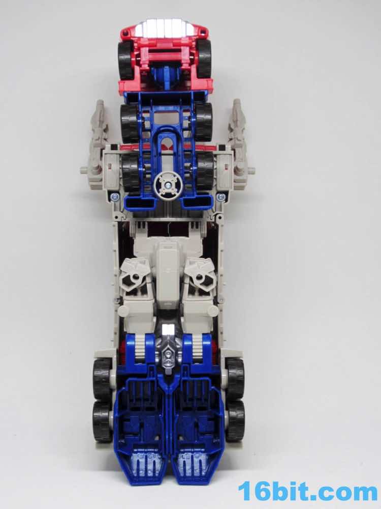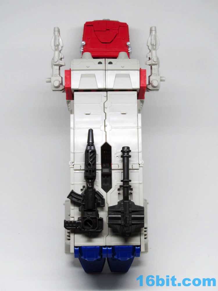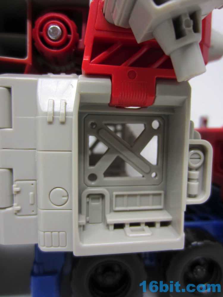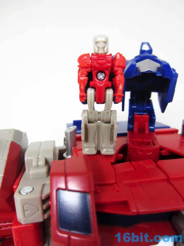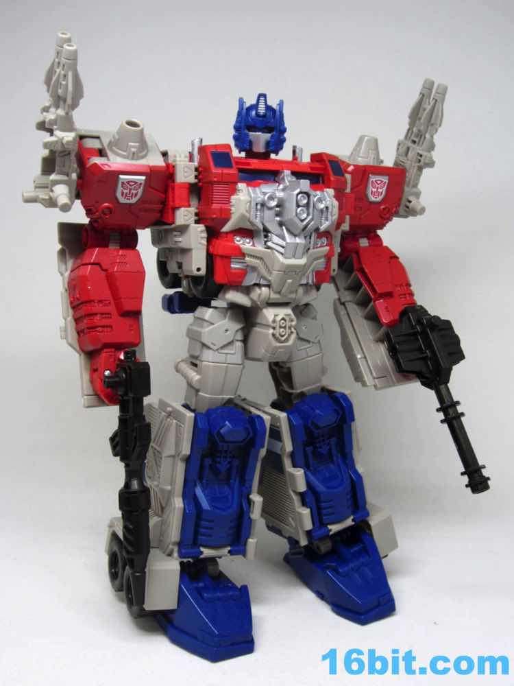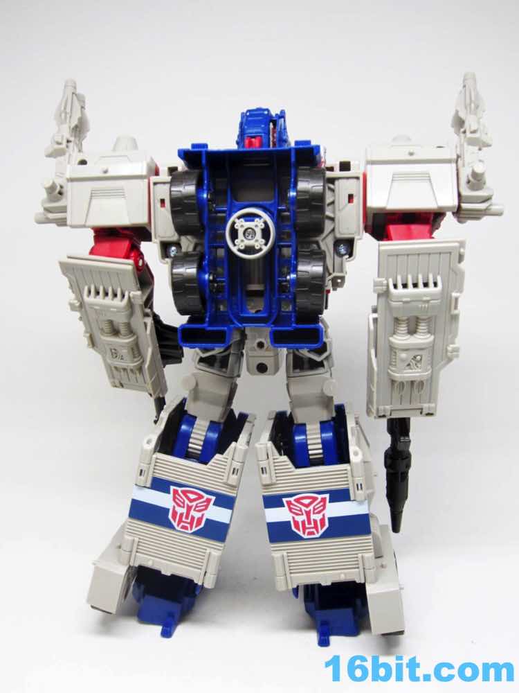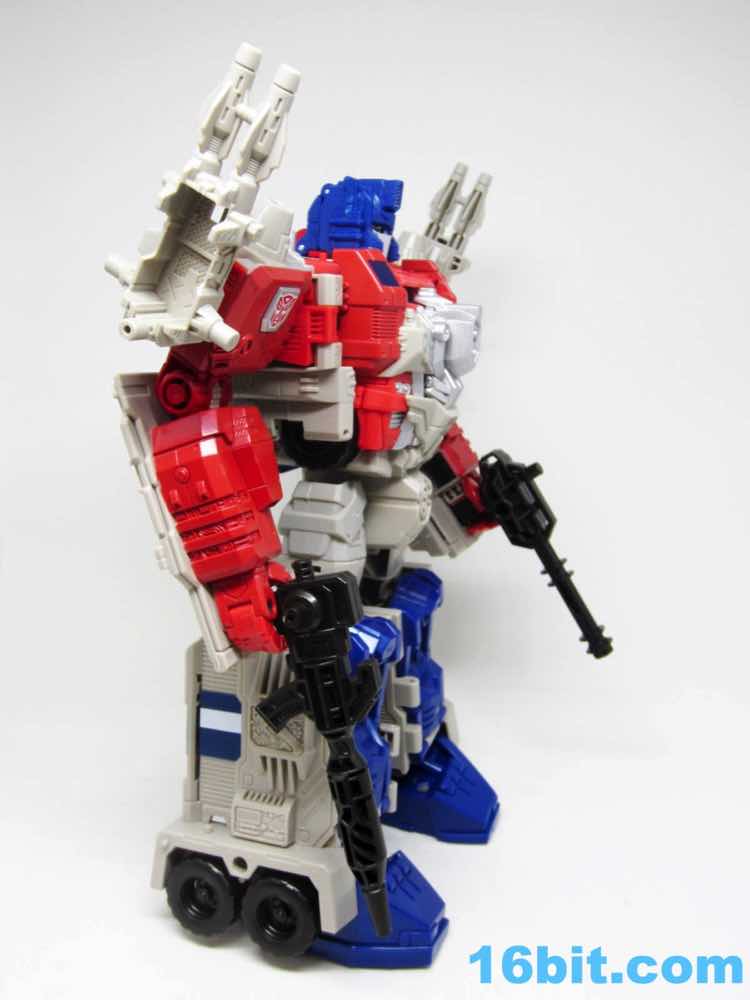 The big robot is pretty fantastic, with articulation that matches Magnus exactly. Or closely. The feet are pretty much the same, the hands are virtually the same - Optimus has grooves in which to plug the grips of his weapons before his hands grip them - and he stands quite nicely. I like the sculpting a lot, the fact that the shoulder cannons are back with little places for Titan Masters to sit is just icing on the cake.