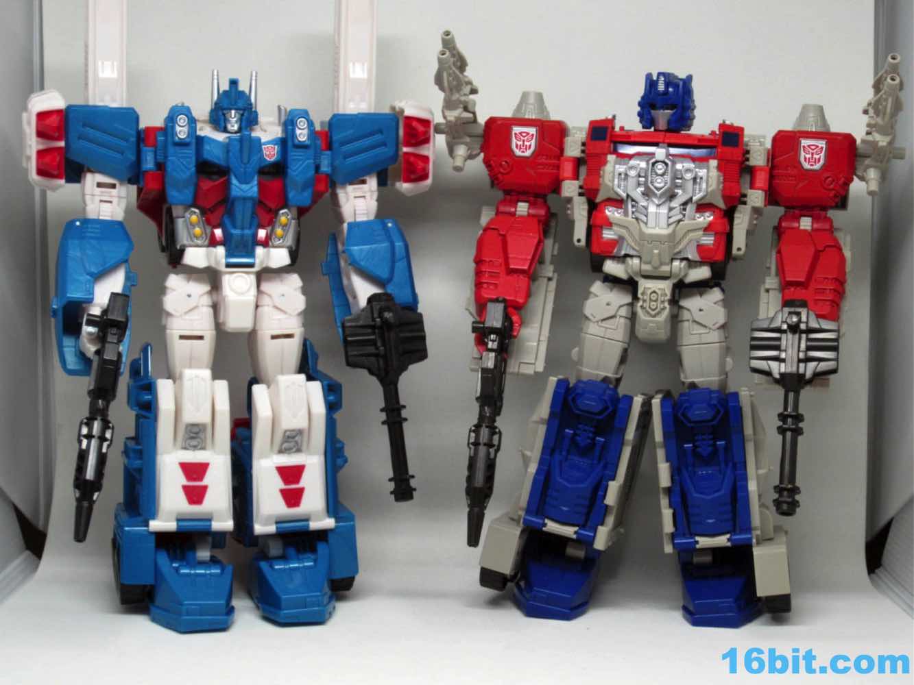 When it comes to the big red bot, Hasbro doesn't shy from giving us new versions of our favorite trucker bot. They haven't made a new toy of Powermaster Optimus Prime until last year, though, and naturally they had to make it interesting in more ways than one. Japan's version of this toy is heavily remolded with different legs, a unique chest, and a toy that looks more like the original toy from the 1980s - Hasbro's is clearly inspired by the original, but it's also a new entity. A new entity made from recycled Ultra Magnus parts, which makes it all the more impressive.