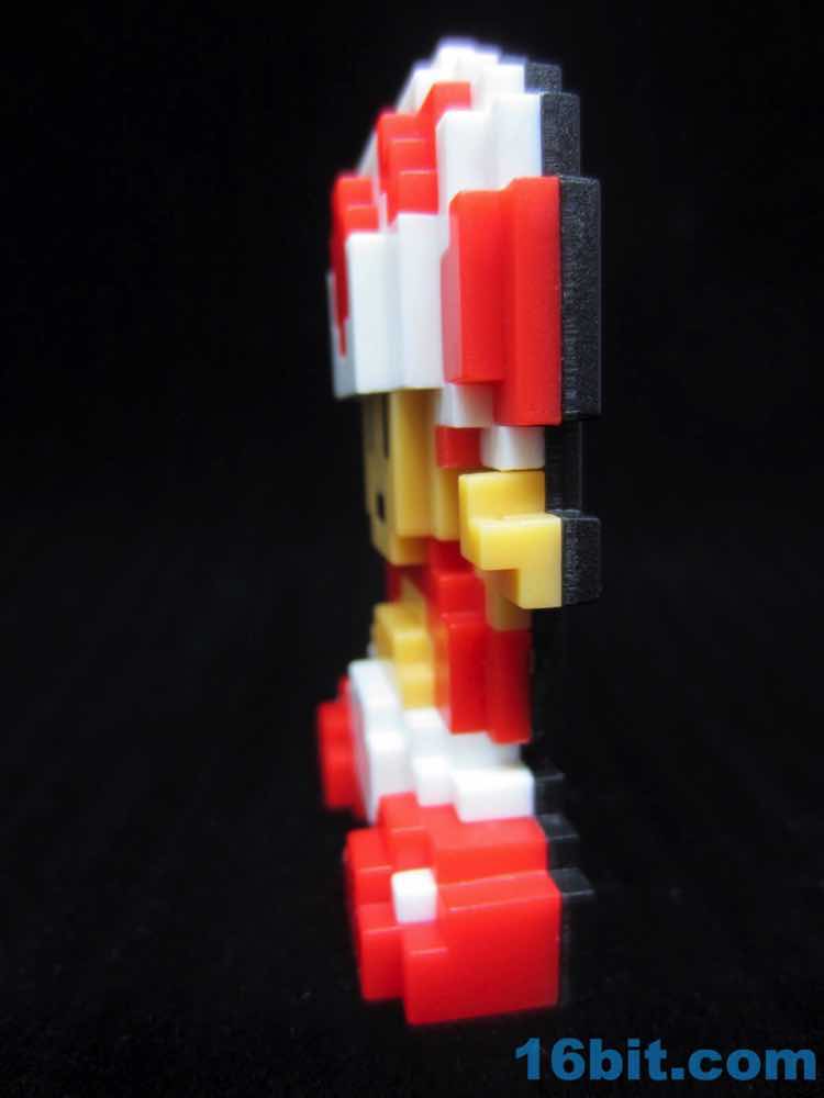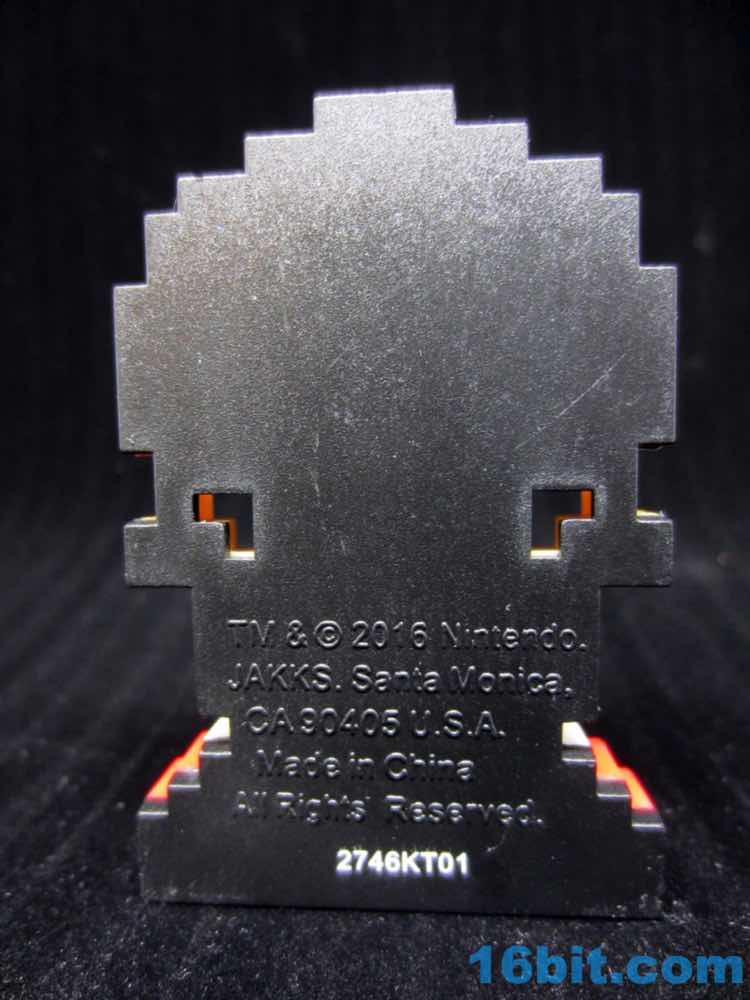 For whatever reason, Jakks elected to make these figures roughly the same physical size - this means Mario is made of bigger pixels, resulting in figures that aren't quite scaled to one another. The white, red, and fleshy figure is modeled exactly as you remember it - showing up in a castle to let you know that the princess isn't there. You just risked your life to save a peasant. Good on you. The figure stands thanks to thicker feet, and sports a bit of a pot belly and a very skinny chest. The dimensions on these pixel figures have been rather fanciful so far, effectively being good for a fridge magnet but less so for a realistic 3-D take on the classic pixel character. At its thinnest point, the figure is only three pixels deep - and thats including the black back of the figure.