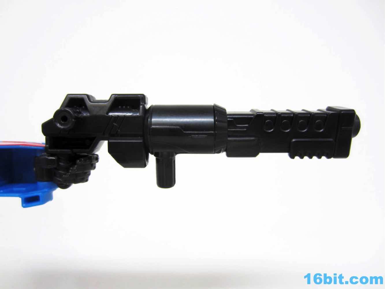 Two 5mm guns can combine with one another into a big rifle, or you can hold them separately - they even mount under his wings, on the jet back, or under the jet nosecone. The design is versatile, and while unpainted the guns are pretty nifty accessories.