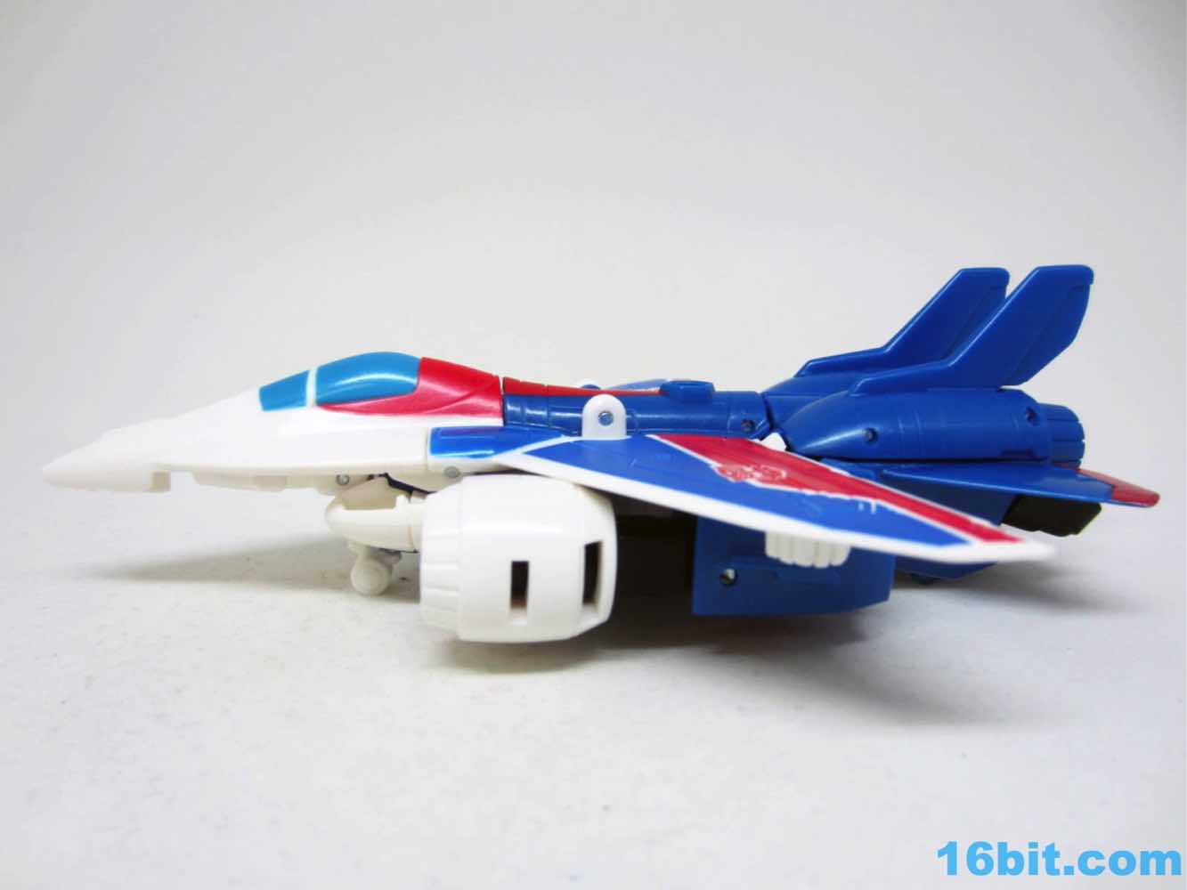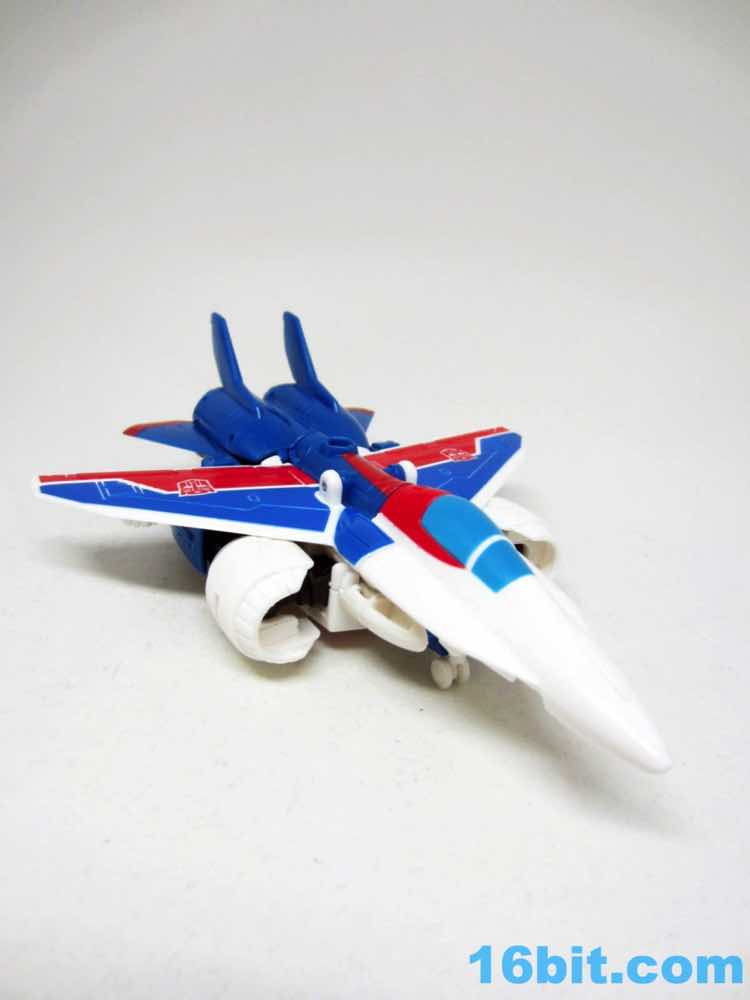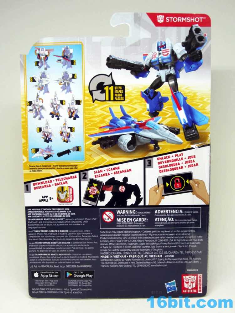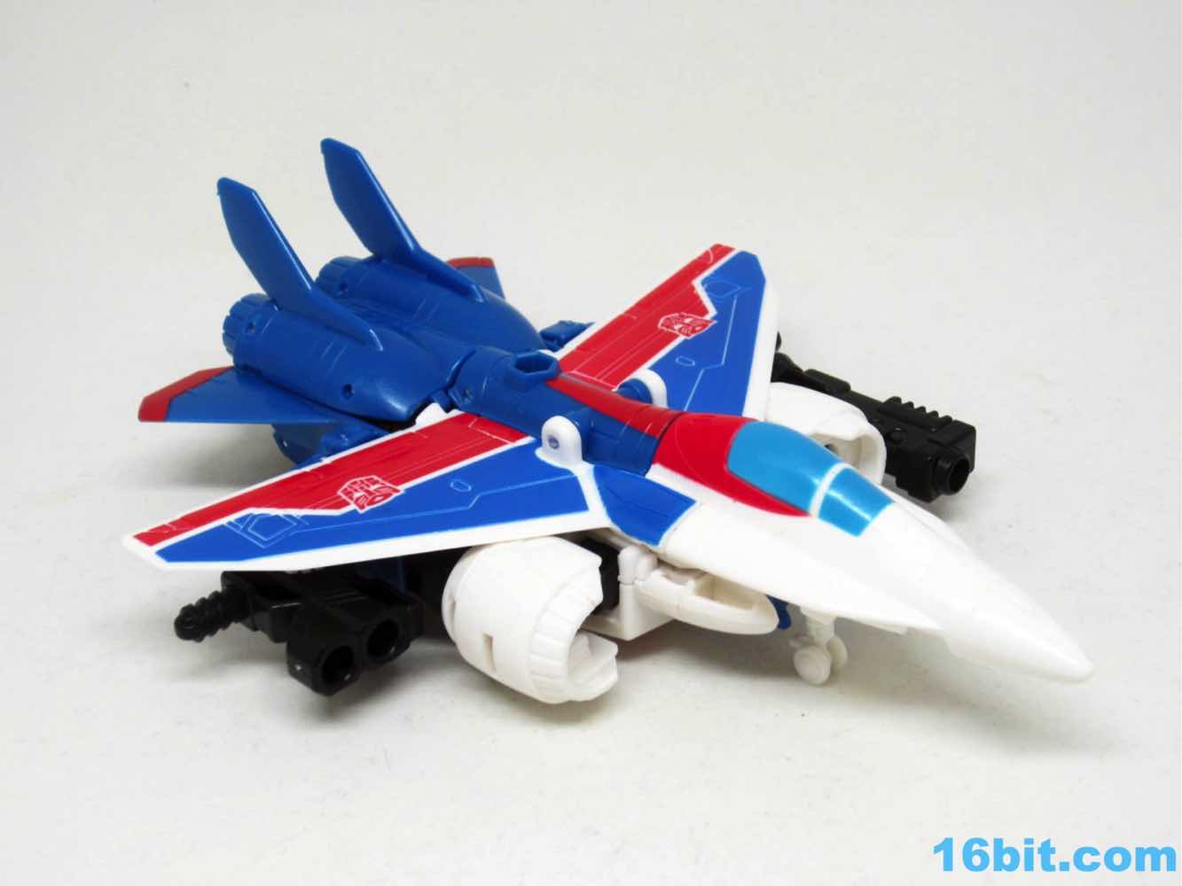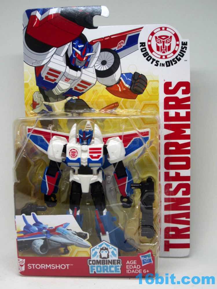 This is a good one. If you liked the jets in Combiner Wars, you'll probably dig Stormshot. Some of the concessions needed to service the combiner modes are long gone, but the transformation is basically the same as those guys - with a vestigial chest cavity that hints at the peg below the breast. With a fancy red, white, and blue color scheme this Decepticon Seeker-esque figure is a slam dunk.