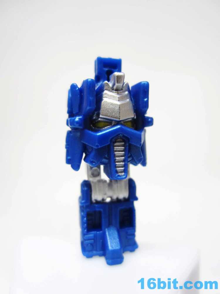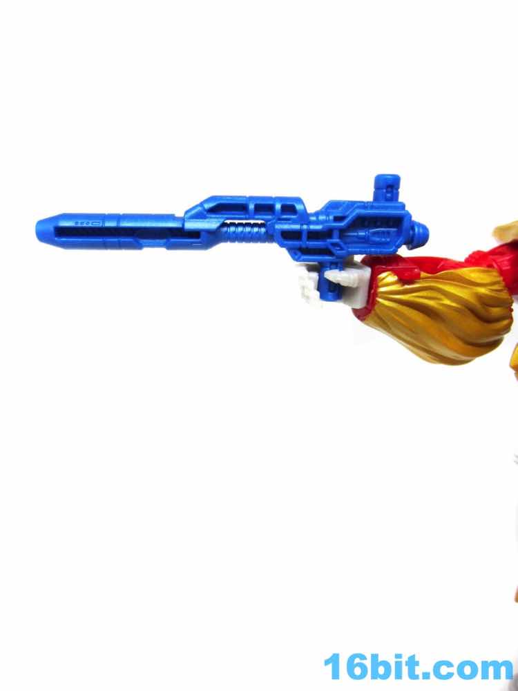 The colors are a lot like the original, with yellow eyes and a slightly paler blue helmet - complete with matching gun (previously sold with Sentinel Prime/Astrotrain). His sword is cast in clear plastic with a gold outer edge and a silver grip, which looks more expensive but not necessarily better than Alpha Trion's orange and purple weapon. The claw weapon is red, and has seating for one Titan Master figure. If you're so inclined, that is.