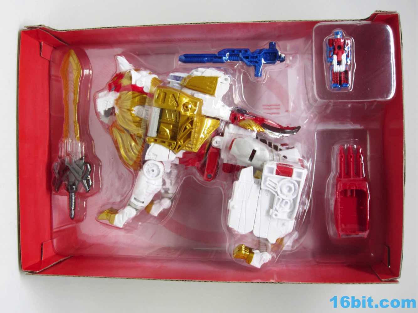 Item No.: No. 205020 Manufacturer:Takara-Tomy Includes:Swords, Head Master, Claw, Blaster Action Feature:Changes from Ancient Leo to Space Carrier to Robot Retail:5,400 yen (or $55 at importers) Availability: February 2017 Other: Lion Optimus Prime