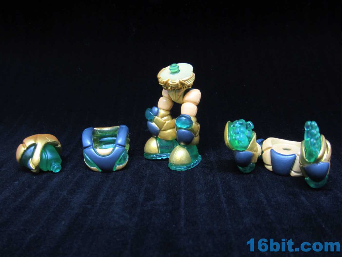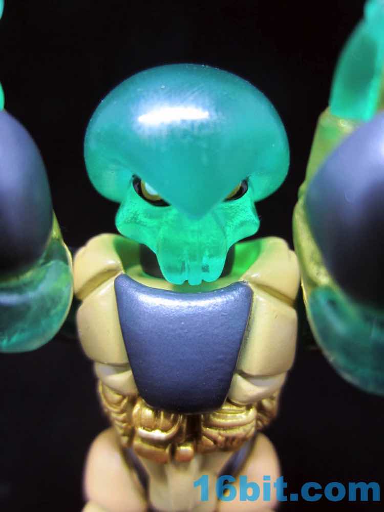 Fancy! Onell Design posted that they were aiming to do fancier paint jobs more in line with The Outer Space Men, and they got it. Standing about 3-inches tall, Glyarmor Cytechion DX is expensive but there's a lot of action here. The figure is molded in the same clear green plastic as Rayexx [FOTD #1,665], but with layers of paint. Many layers. There's a creamy yellow layer, metallic gold, and some grey - plus a few places for the green to peer through.