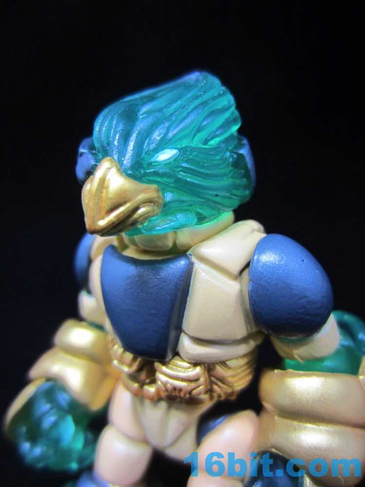 The figure did sell out pretty quickly, with green soles, gold toes, and nifty shin armor. There's a lot of rich color here, with little hints of green shining through all over the place.