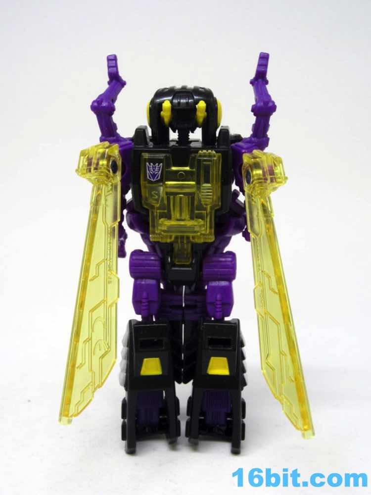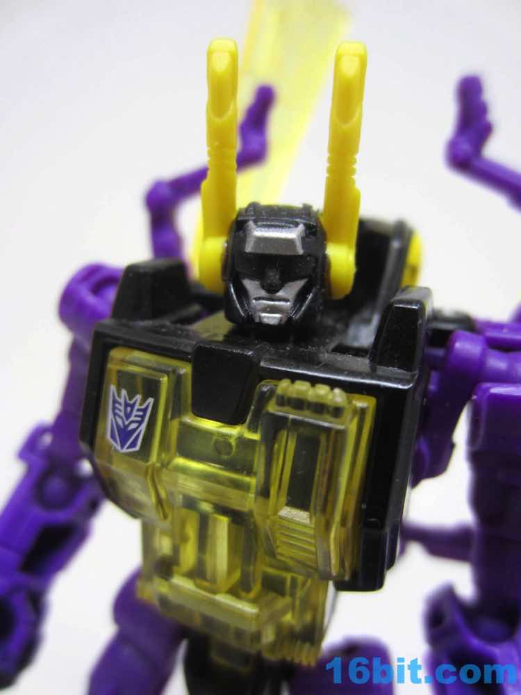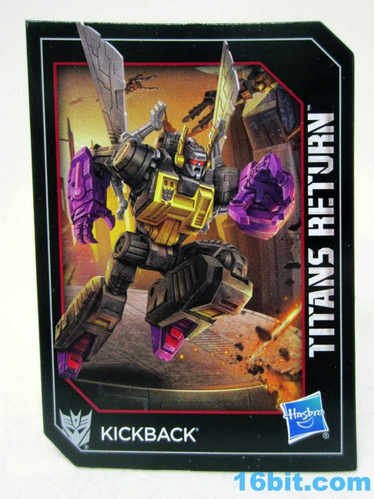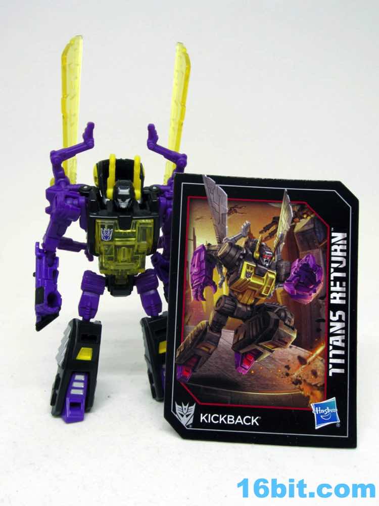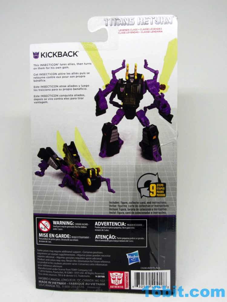 The long-awaited Titans ReturnKickback is, months after its release, still in short supply. I haven't seen one in the wild yet - I got mine online last year with Bumblebee and Gnaw. The last of the original group of Insecticons, Kickback comes years after Skrapnel and Bombshell - and in slightly different colors, with a different aesthetic. They still look good together, but it's clearly a different toy from a different era. This is the only one of the three bugbots to feature clear plastic, for example, retaining a key element from the original toy in a window on the figure's back. This allows you to enjoy a rumble seat for your Titan Masters figures (sold separately.)