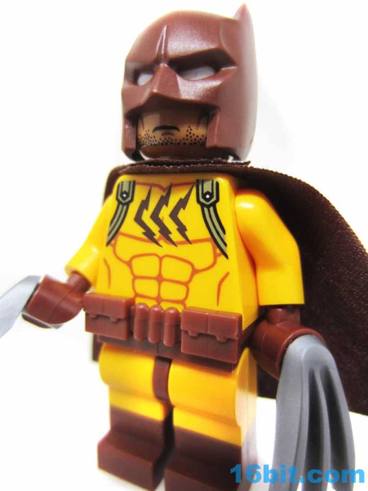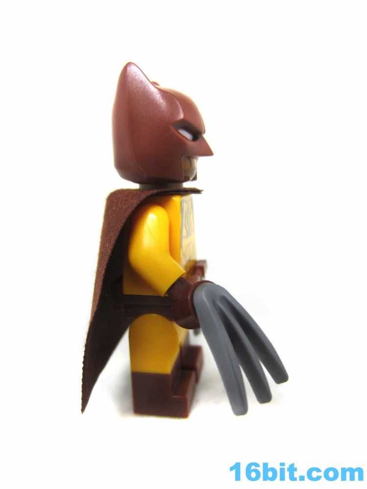 The figure's cowl is different than Batman's, which surprises me given how easy it would have been to reuse the same cowl from the Bat-bags. It works pretty much the same way - the minifigure head has a white headband that functions as eyes once the mask goes on. There's also a belt piece rather than just painting it on the torso, as was the case in older Batman figures. Catman's claws are hand-held weapons that look like Wolverine's claws. Hey, it works.